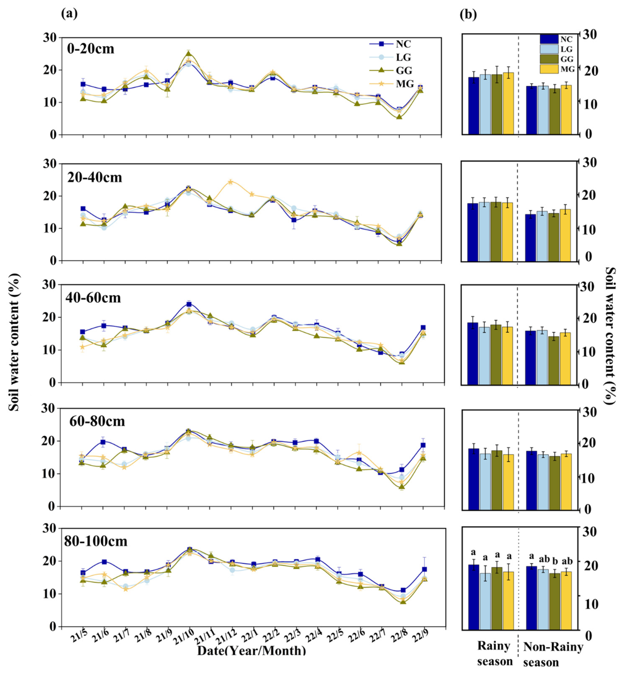 - Chen, D.Y.; Wang, Y.K.; Zhang, X.; Wei, X.G.; Duan, X.W.; Muhammad, S. Understory mowing controls soil drying in a rainfed jujube agroforestry system in the Loess Plateau. Agric. Water Manag. 2021, 246, 106703. [Google Scholar] [CrossRef]