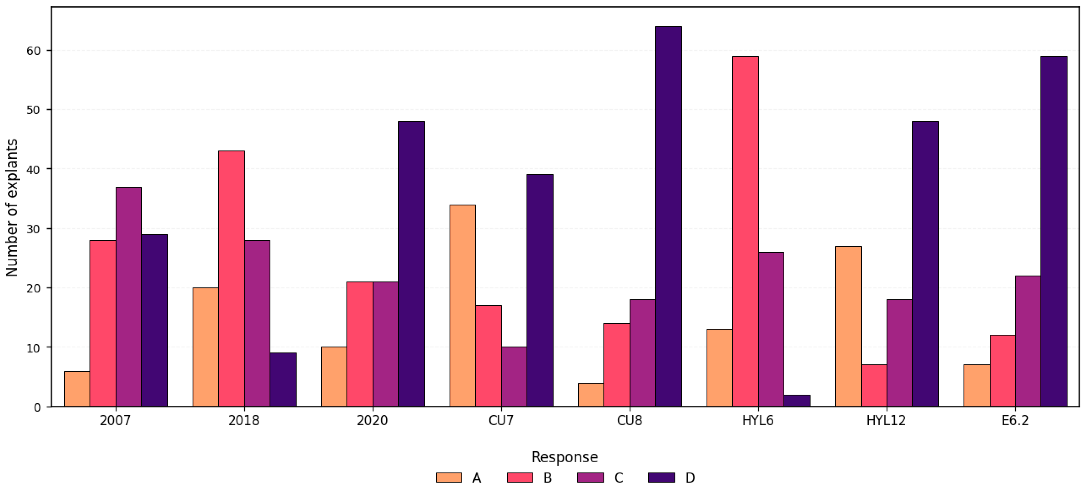 | Medium | Response|Embryos | Total Explants | Total Embryos | |||
