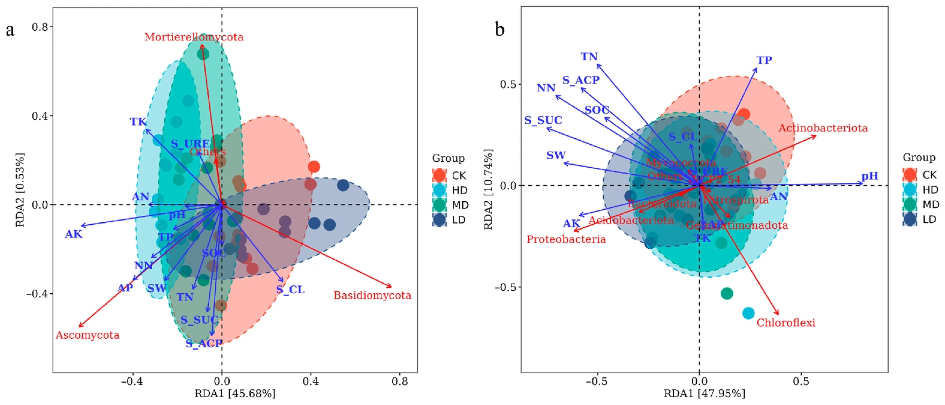 2.5. Main Environmental Factors Affecting Soil Microbial Community Structure