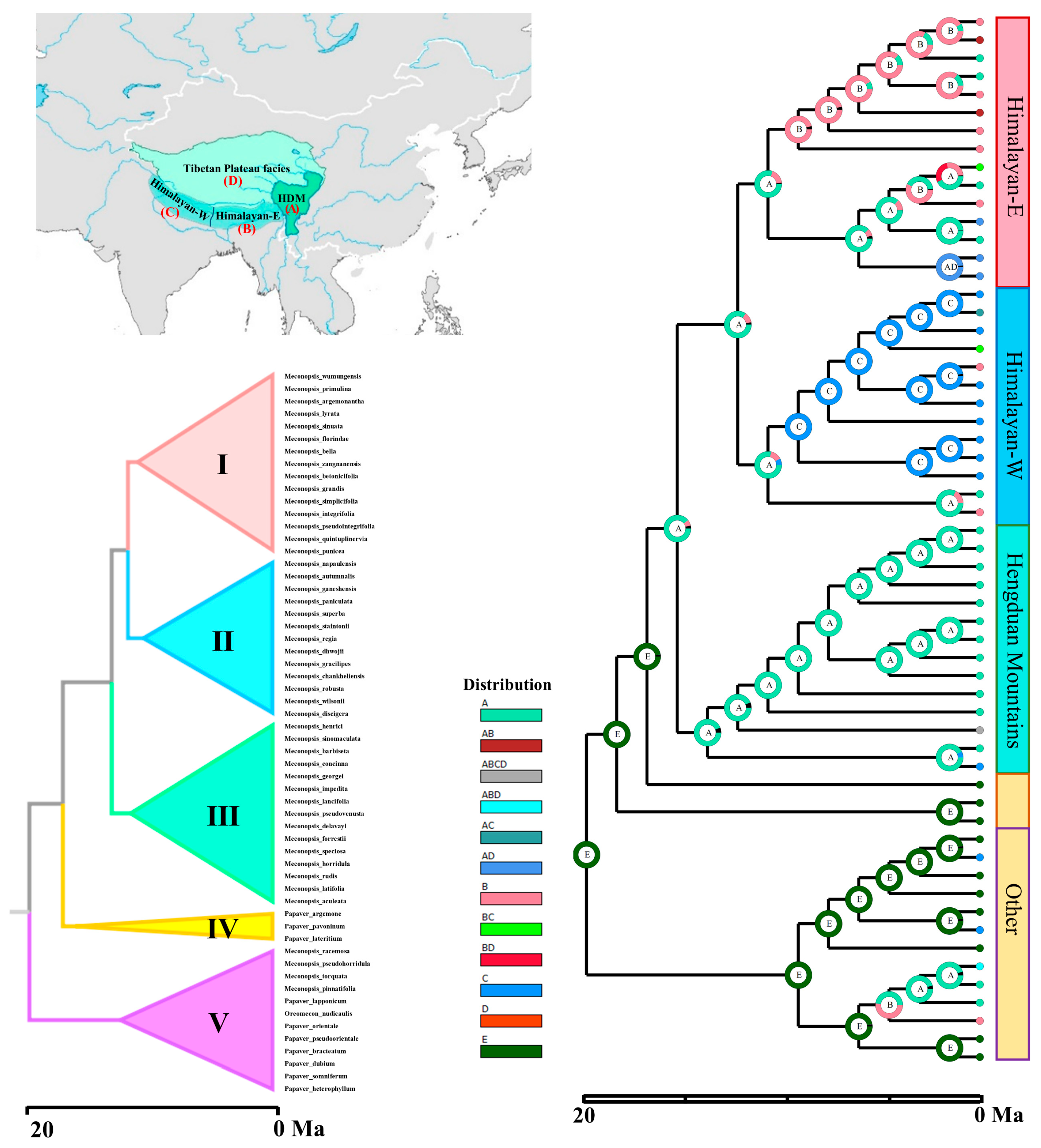 3.1. Geographic Dispersal Events of Meconopsis Species