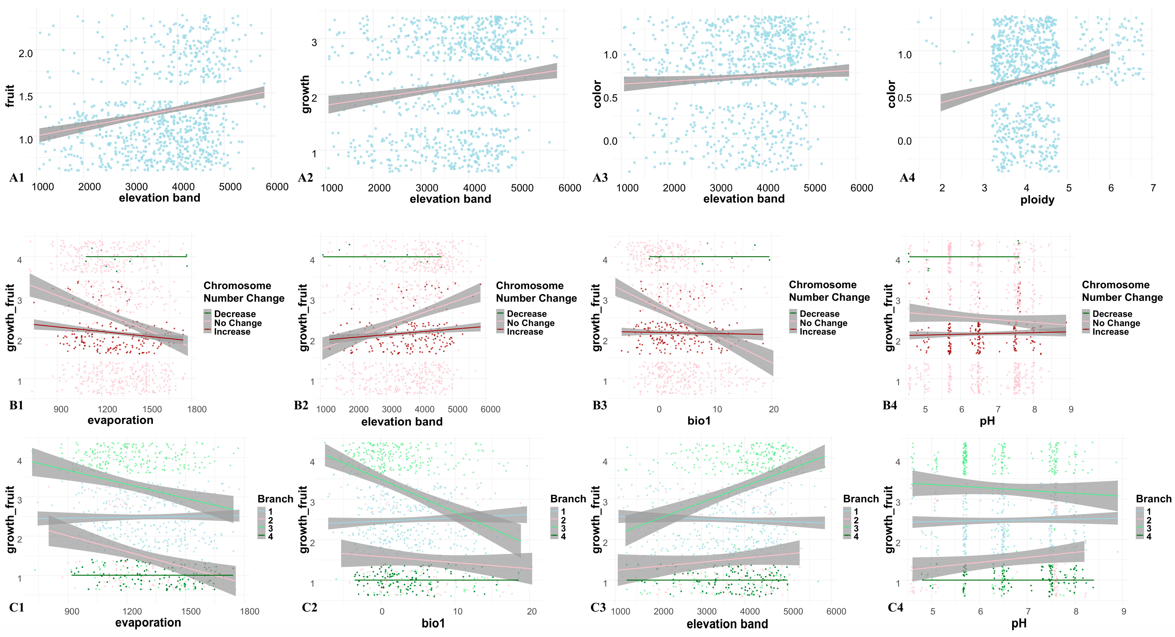 3.2. Evolution of Reproductive, Growth, and Fruiting Traits