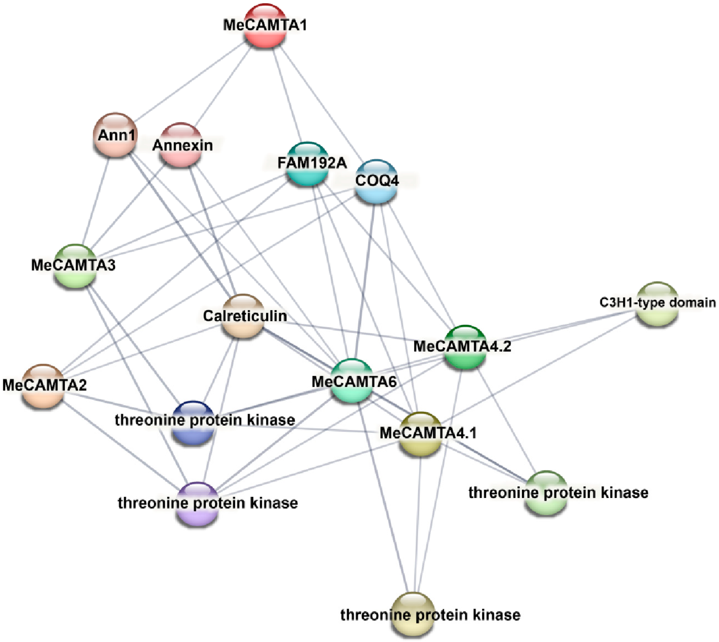2.6. Predicted Protein–Protein Interaction Network of MeCAMTAs