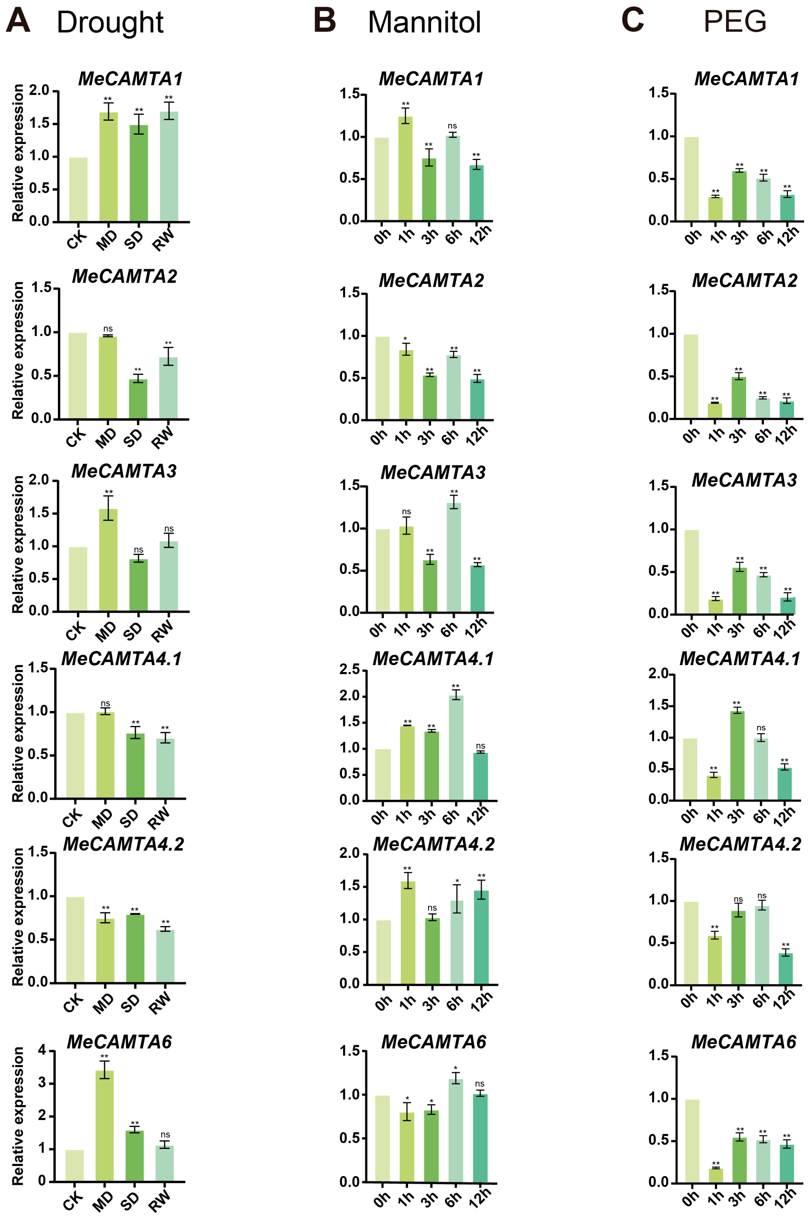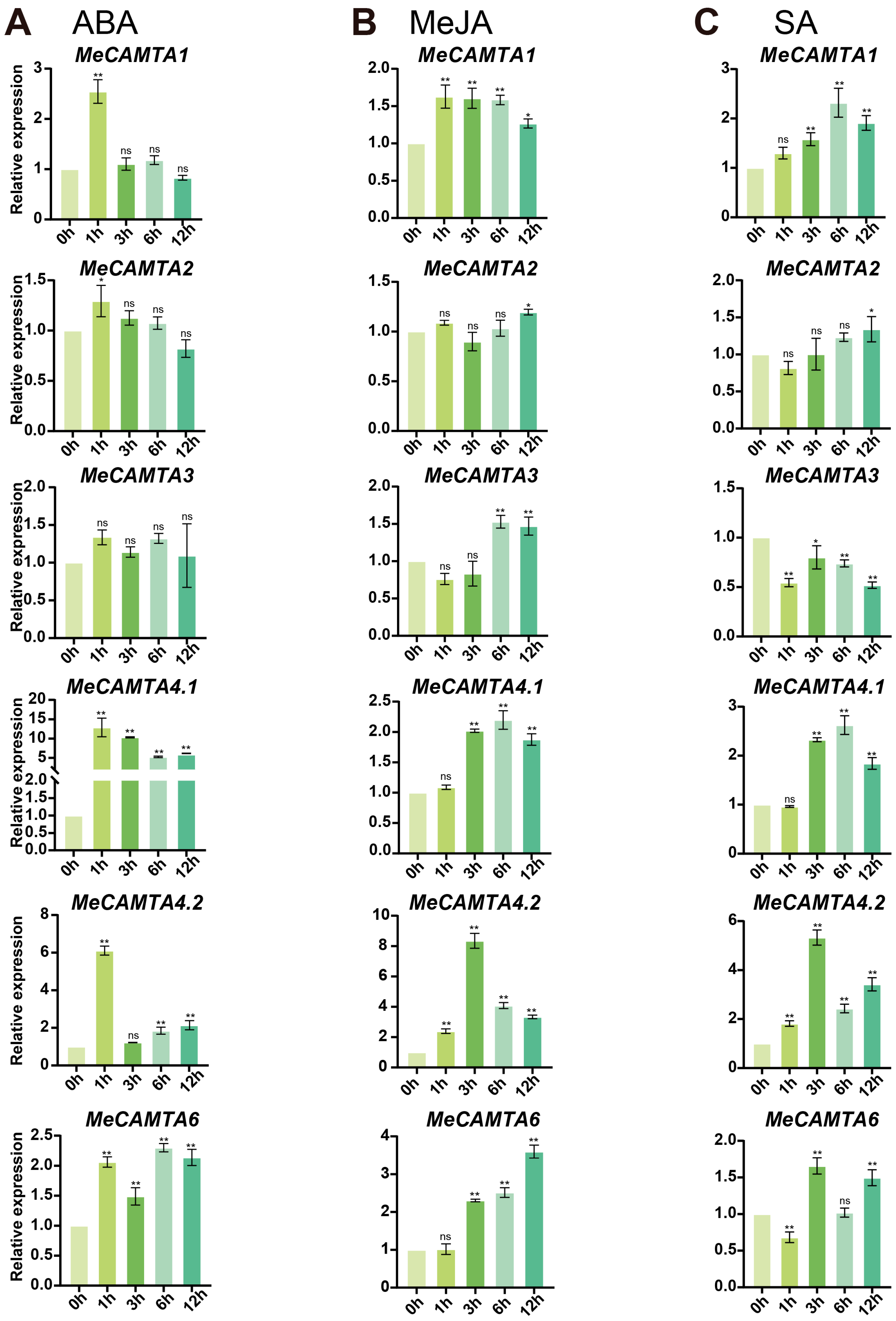 2.8. Expression Analysis of MeCAMTAs Under Different Treatments