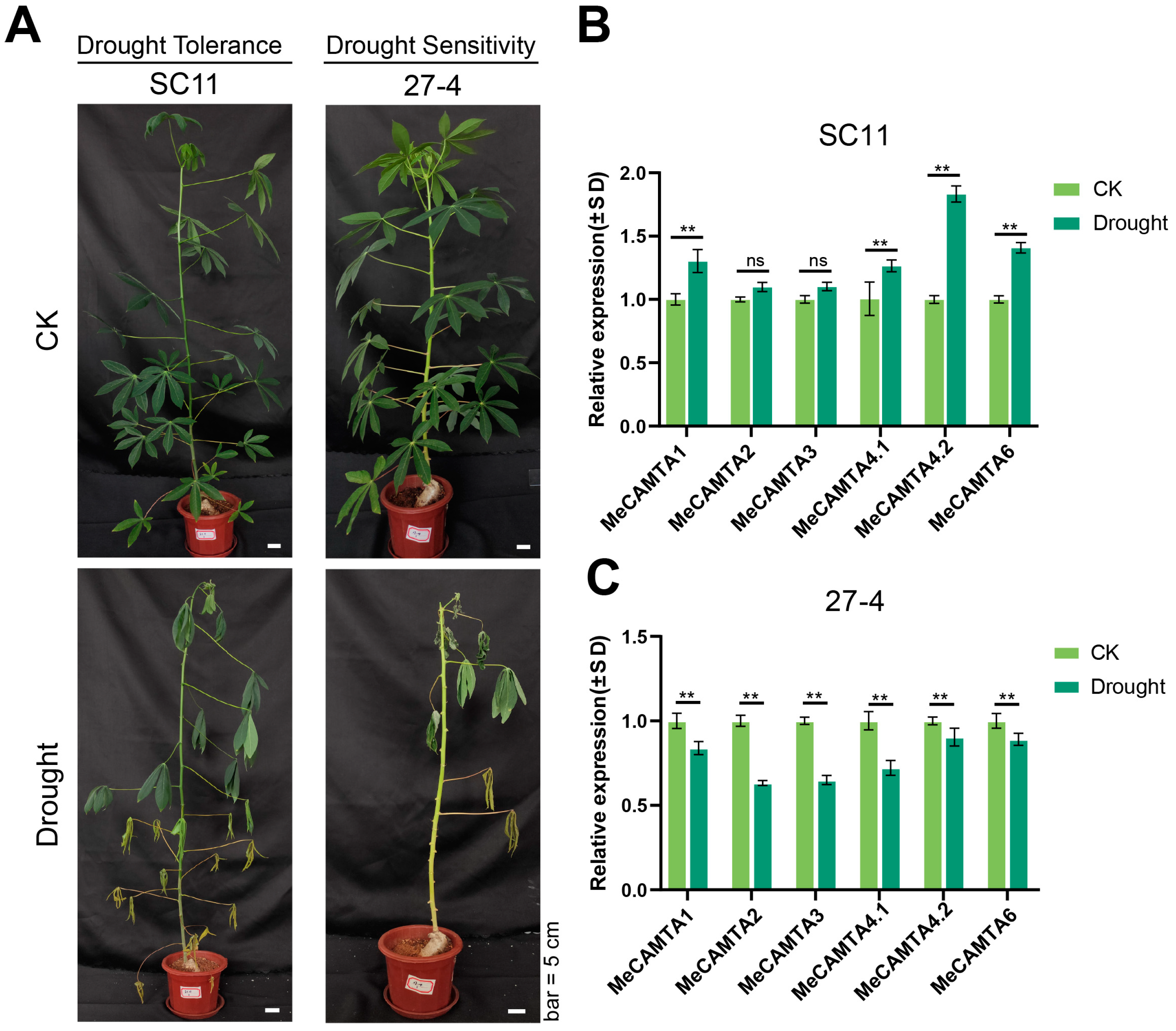 2.9. Phenotype and Expression Patterns of MeCAMTA Genes in Cassava Under Drought Stress