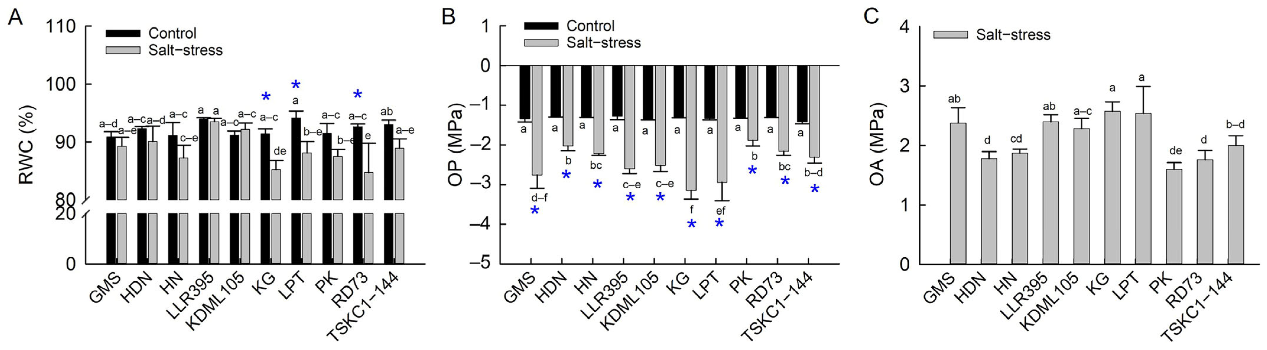- Relative water content (RWC), osmotic potential (OP), and osmotic adjustment (OA)