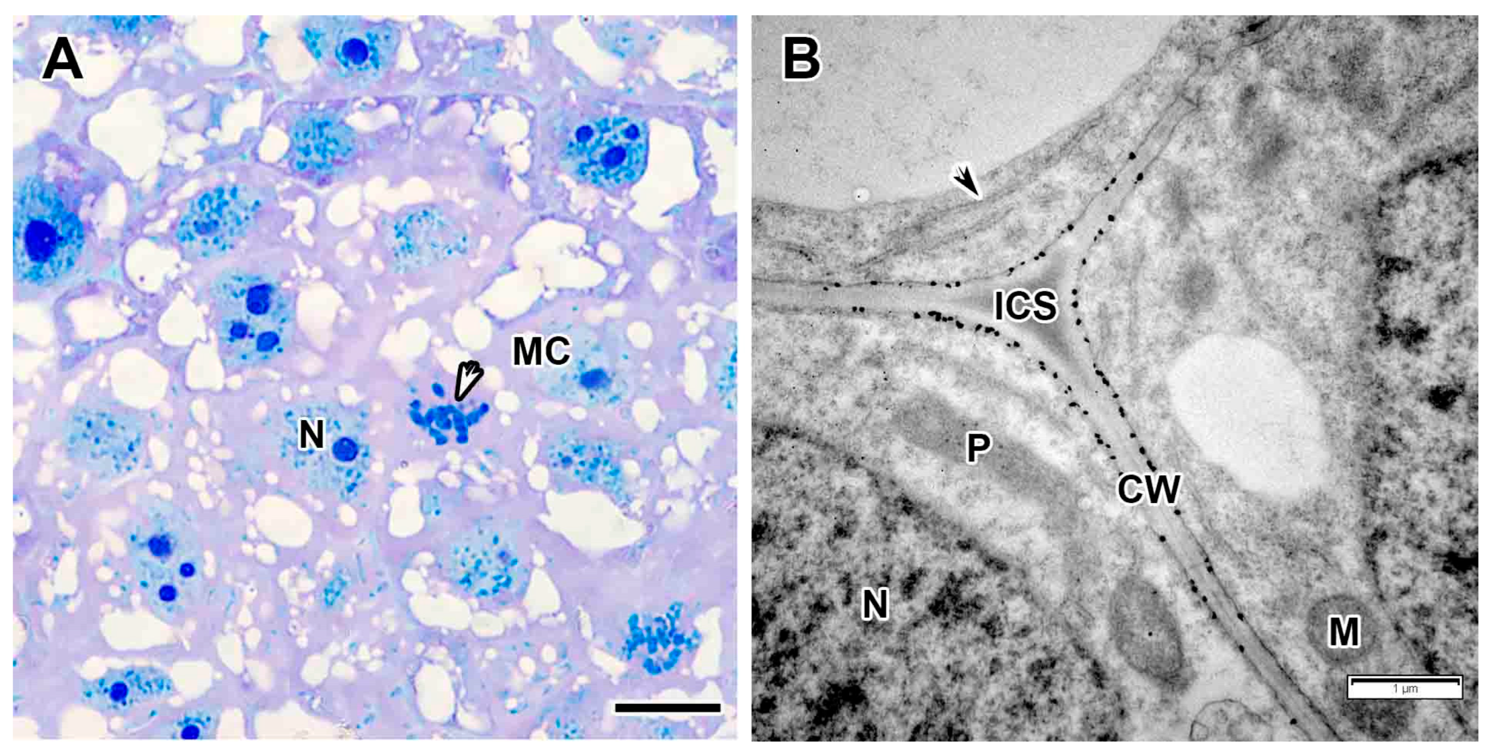 - Sujkowska-Rybkowska, M.; Borucki, W. Accumulation and localization of extensin protein in apoplast of pea root nodule under aluminum stress. Micron 2014, 67, 10–19. [Google Scholar] [CrossRef]