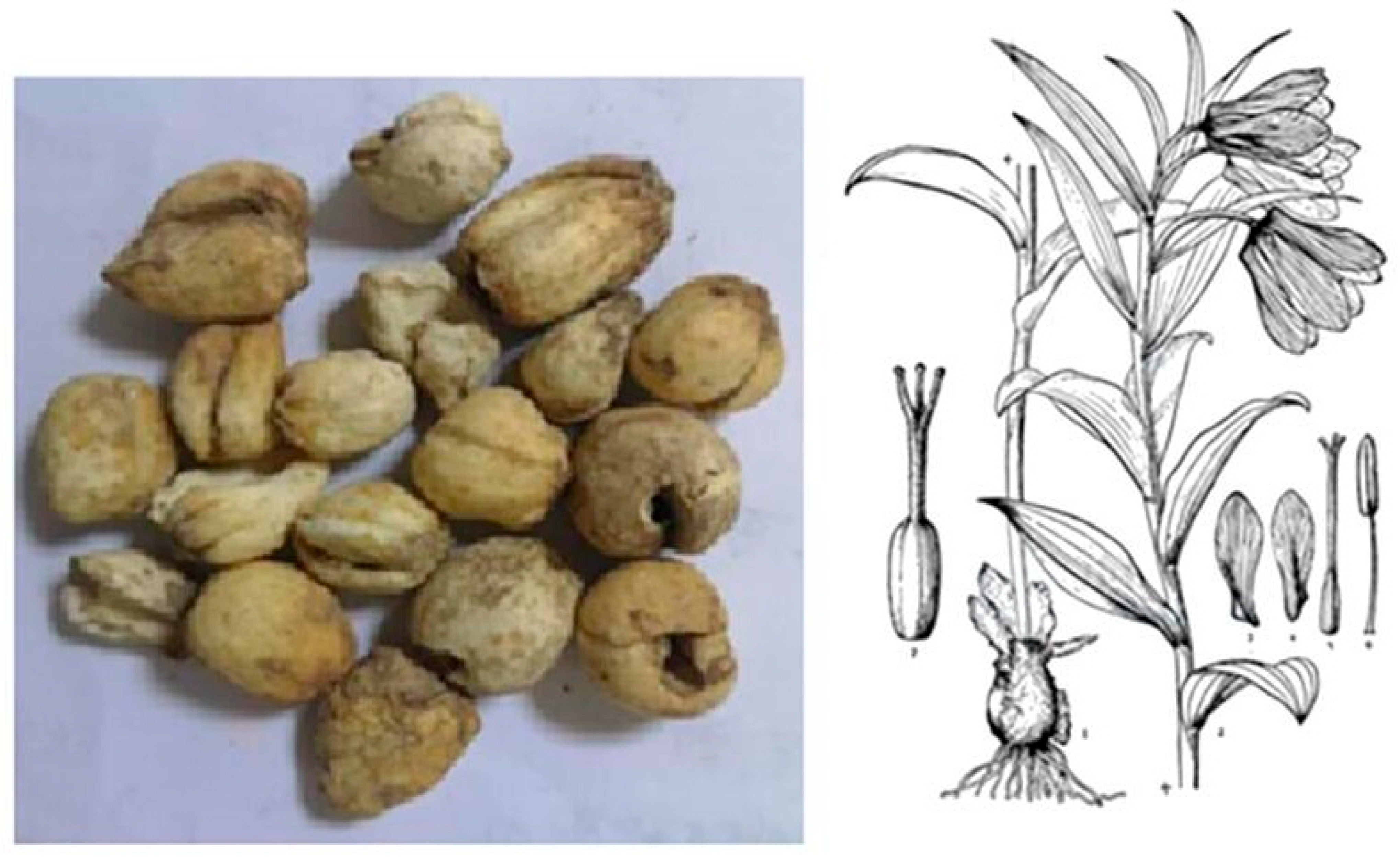- Rashid, I.; Yaqoob, U. Traditional Uses, Phytochemistry and Pharmacology of Genus Fritillaria—A Review. Bull. Natl. Res. Cent. 2021, 45, 124. [Google Scholar] [CrossRef]