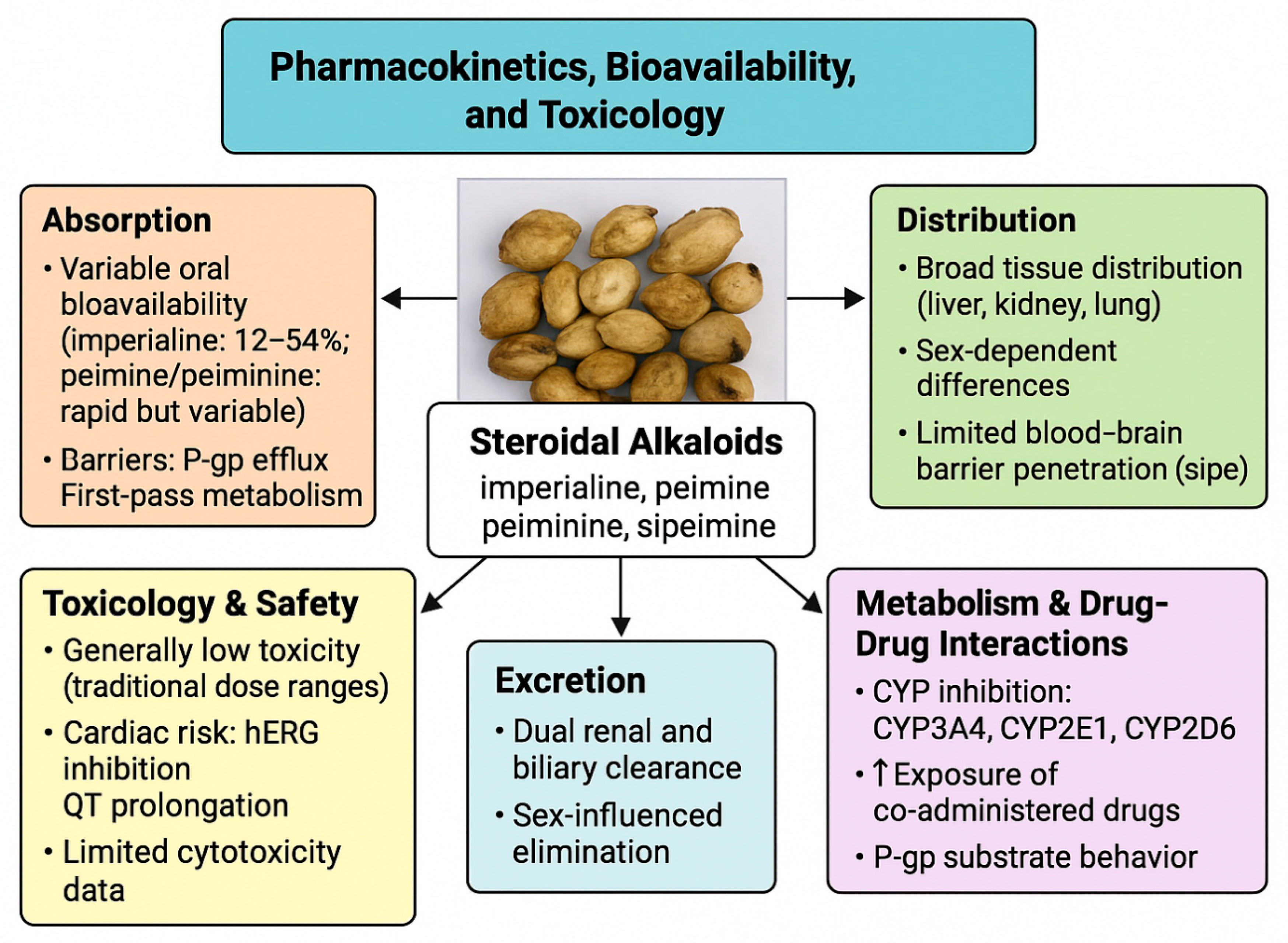 | Sipeimine | Steroidal alkaloid | QC/PK marker; UPLC–MS/MS quantification and metabolism mapping | [51] |