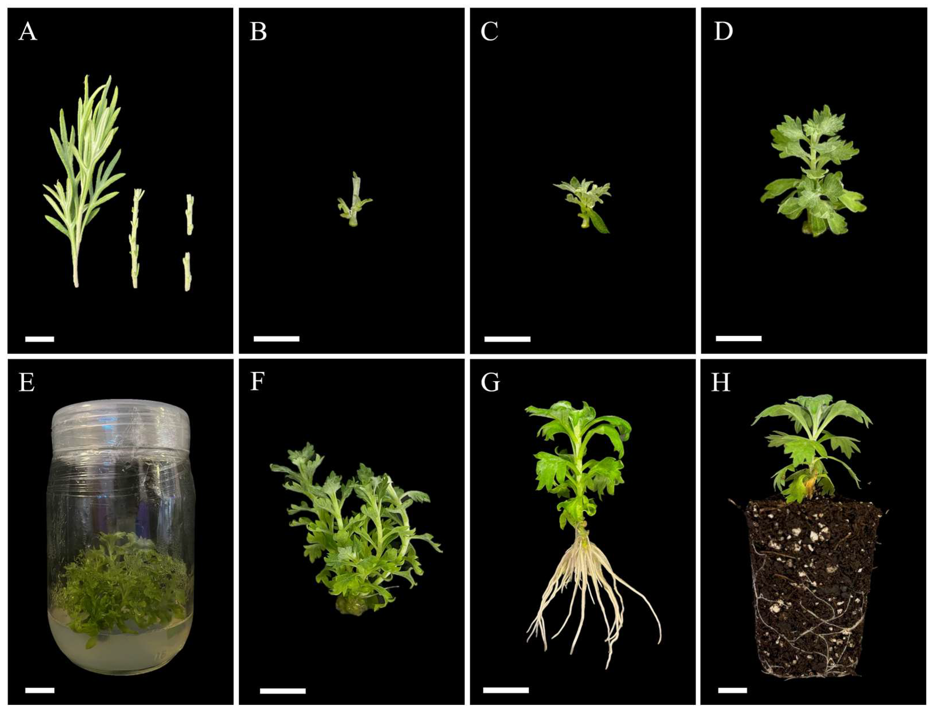 - Shinde, S.; Katewal, P.R.; Shanbhag, D.D.; Joseph, K.S.; Murthy, H.N. In Vitro Propagation of Artemisia japonica. J. Herbs Spices Med. Plants 2017, 23, 36–43. [Google Scholar] [CrossRef]