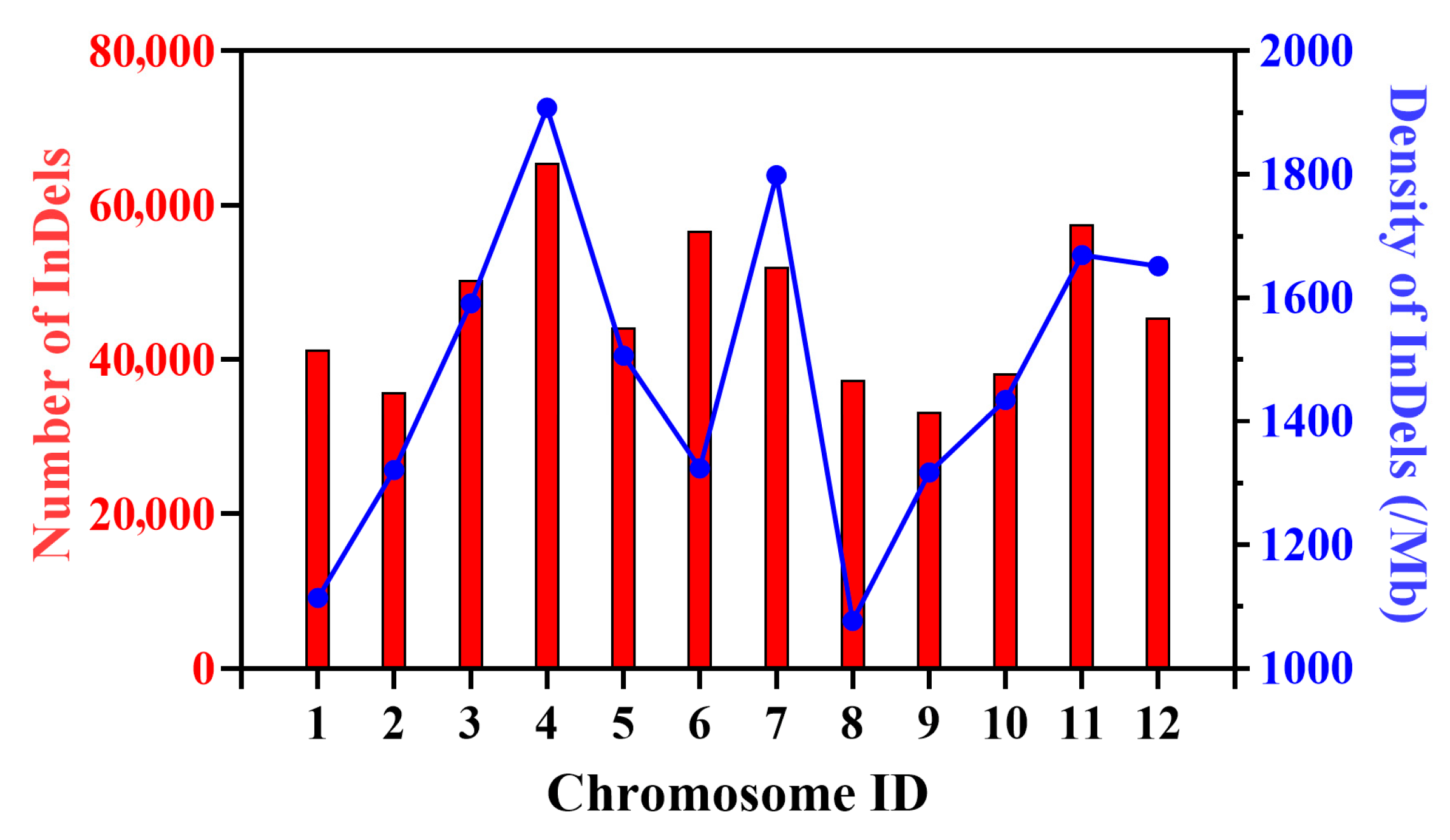 2.1. The Chromosomal Distribution Characteristics of InDel Variations
