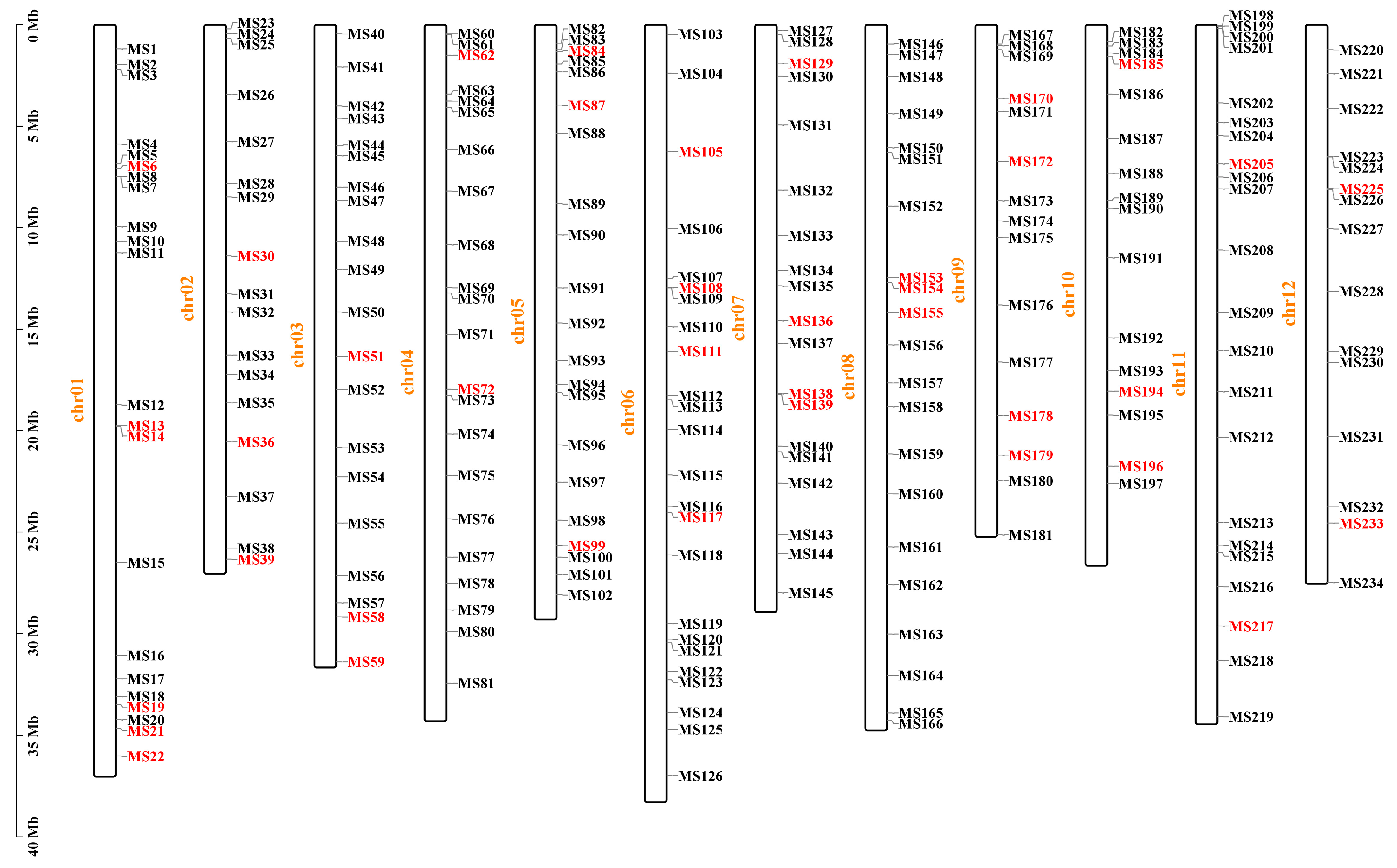 | MS99 | chr05_25658229 | ACCTCATCAACTGTGAGGCC | AGGATGGAGCACTGATGAAGAA |