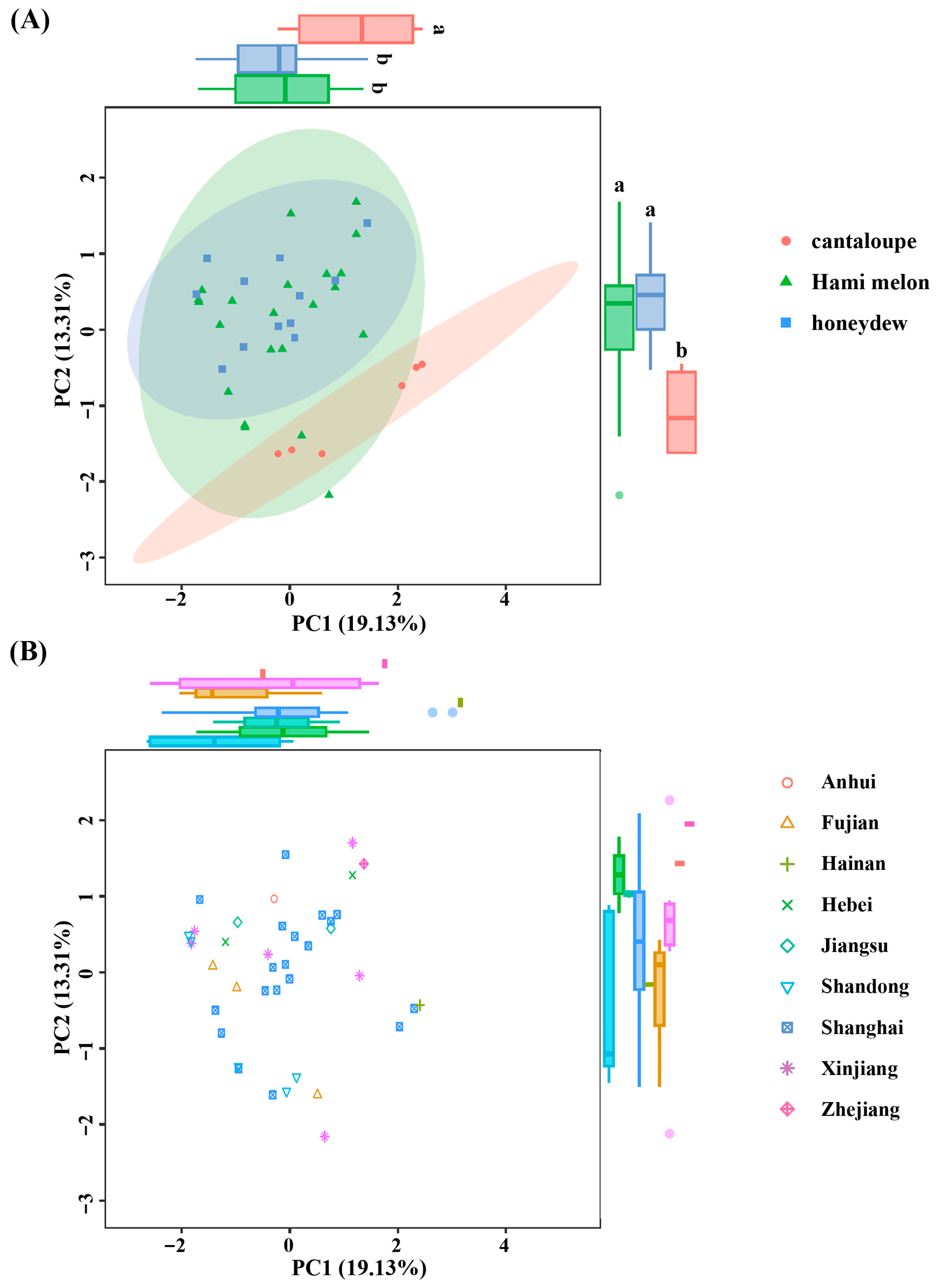 - Flores-León, A.; Peréz Moro, C.; Martí, R.; Beltran, J.; Roselló, S.; Cebolla-Cornejo, J.; Picó, B. Spanish melon landraces: Revealing useful diversity by genomic, morphological, and metabolomic analysis. Int. J. Mol. Sci. 2022, 23, 7162. [Google Scholar] [CrossRef]