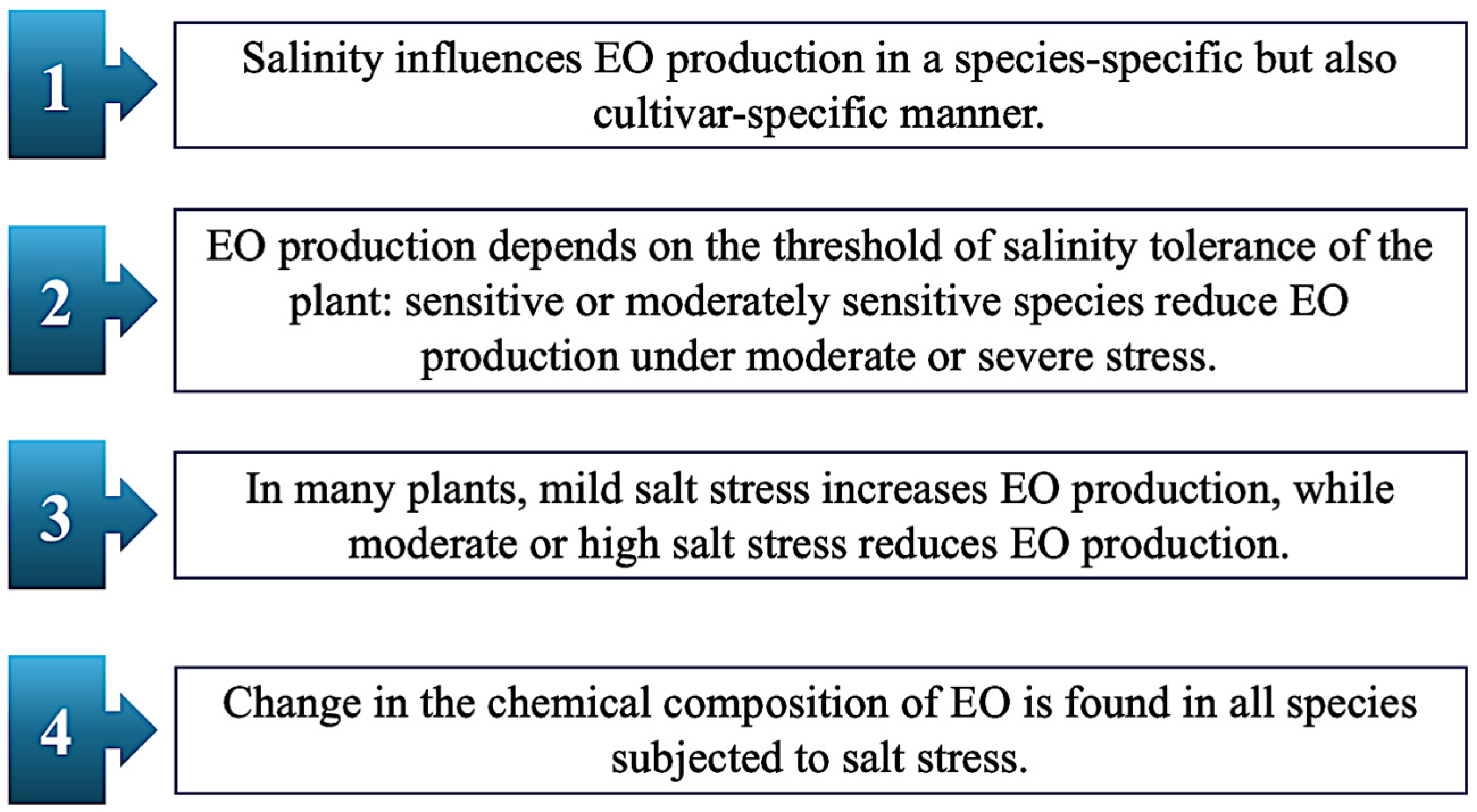 | Inclusion criteria | Studies addressing EOs in relation to climate change and abiotic stresses (salt and drought stress) |