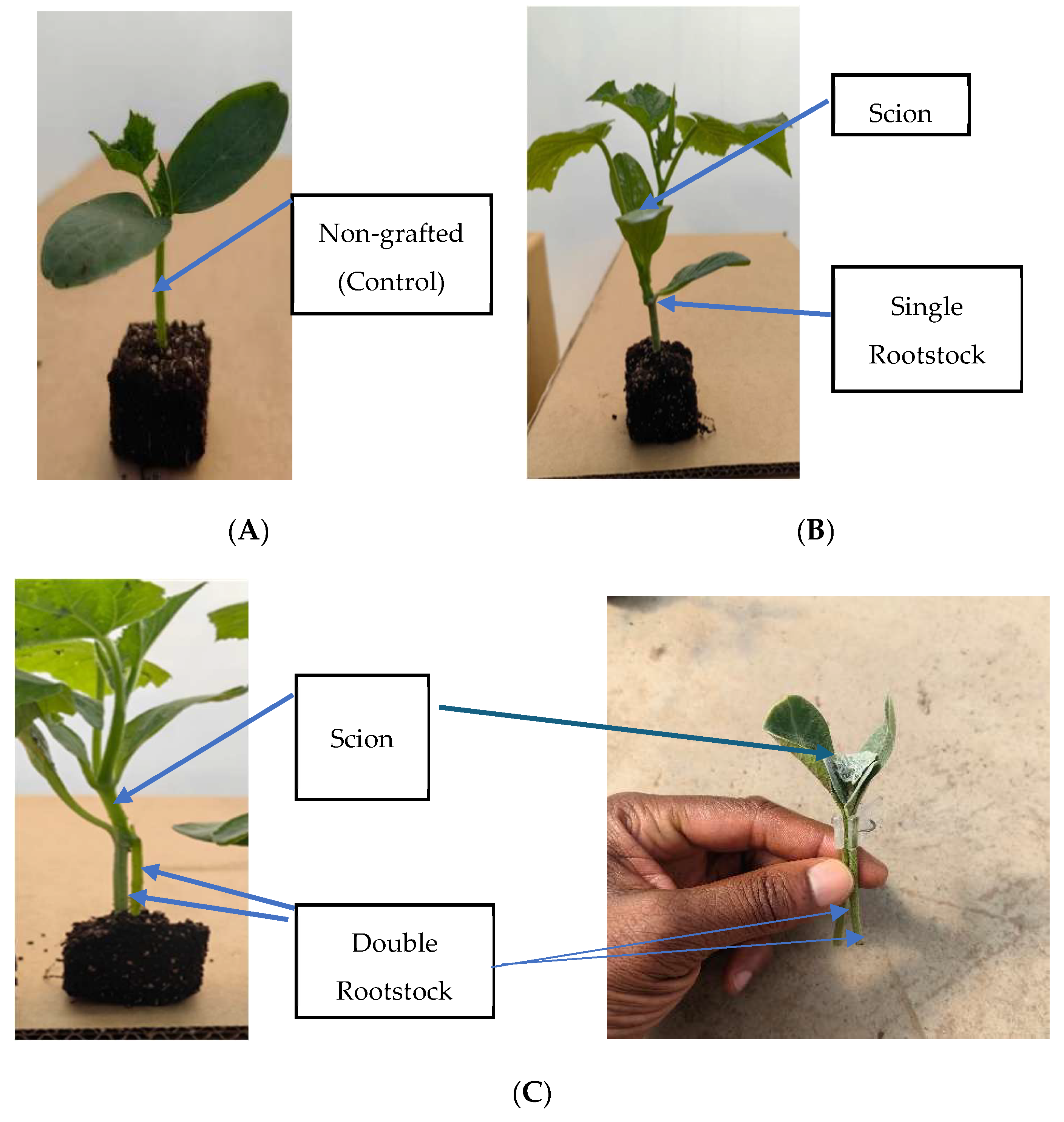 - Noor, R.S.; Wang, Z.; Umair, M.; Yaseen, M.; Ameen, M.; Rehman, S.-U.; Khan, M.U.; Imran, M.; Ahmed, W.; Sun, Y. Interactive effects of grafting techniques and scion-rootstocks combinations on vegetative growth, yield and quality of cucumber (Cucumis sativus L.). Agronomy 2019, 9, 288. [Google Scholar] [CrossRef]