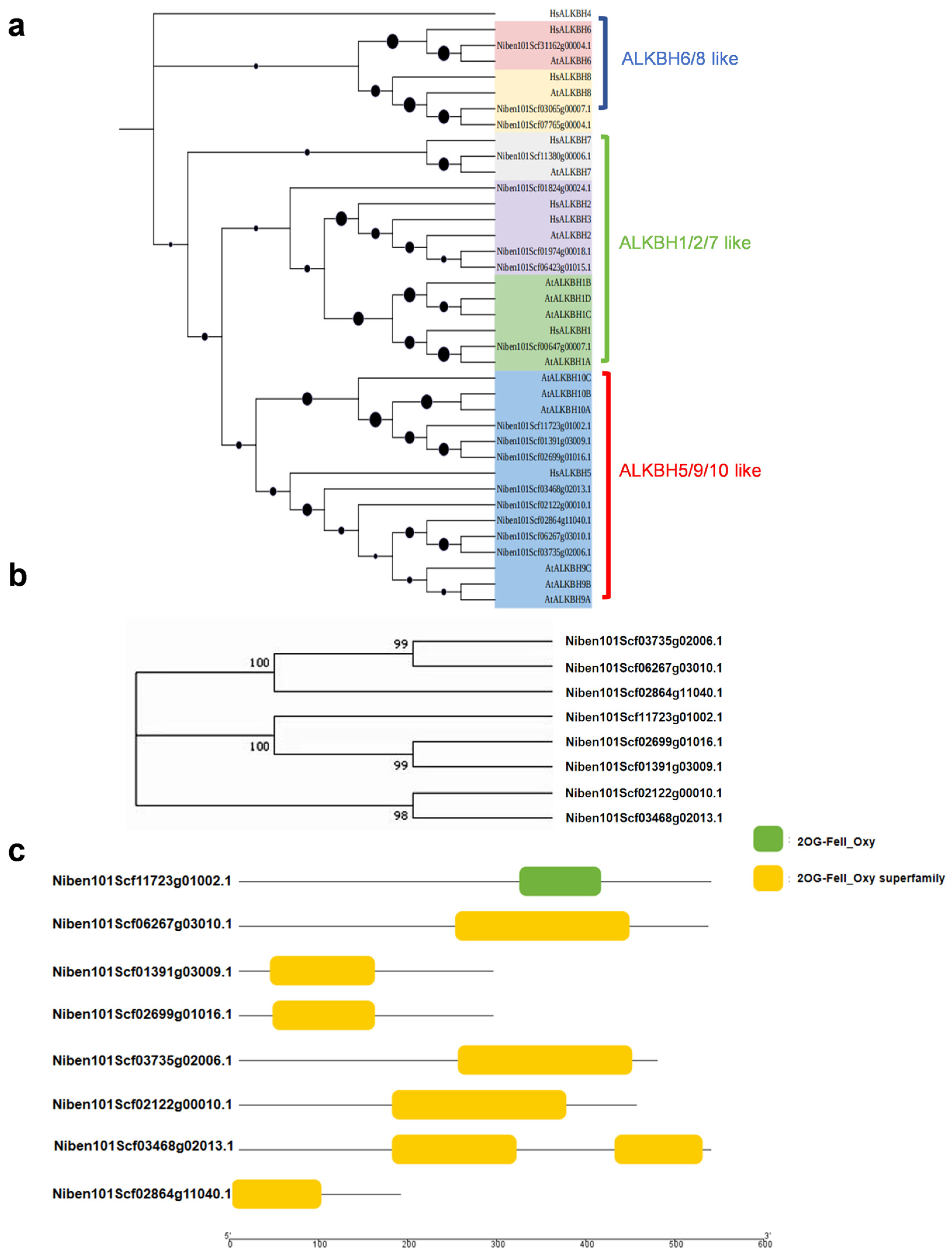4.2. Identification of AlkB Homolog (ALKB) Gene Family Members in N. benthamiana