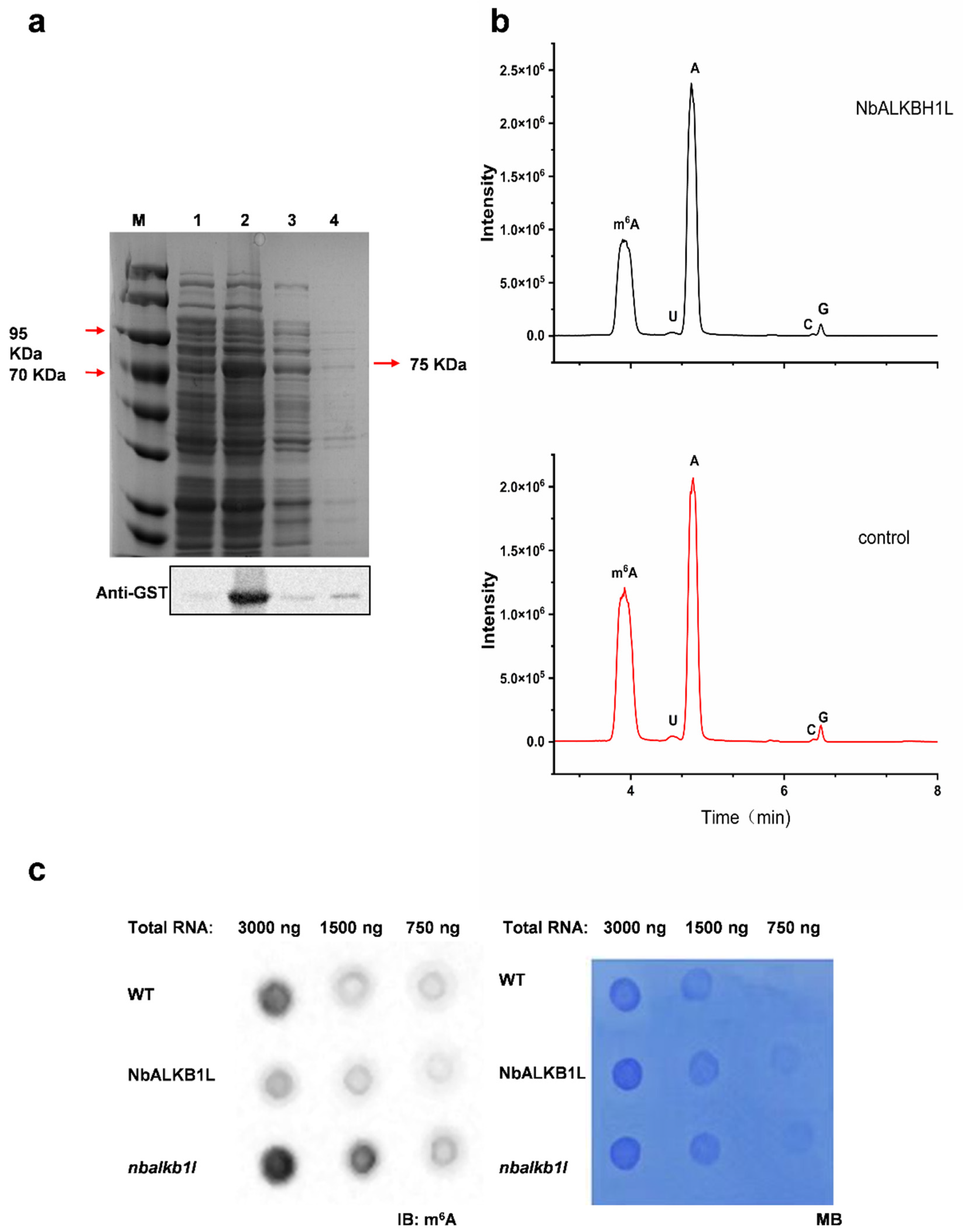 2.4. NbALKBH1L Possesses the Ability to Demethylate m6A Methylation Modifications