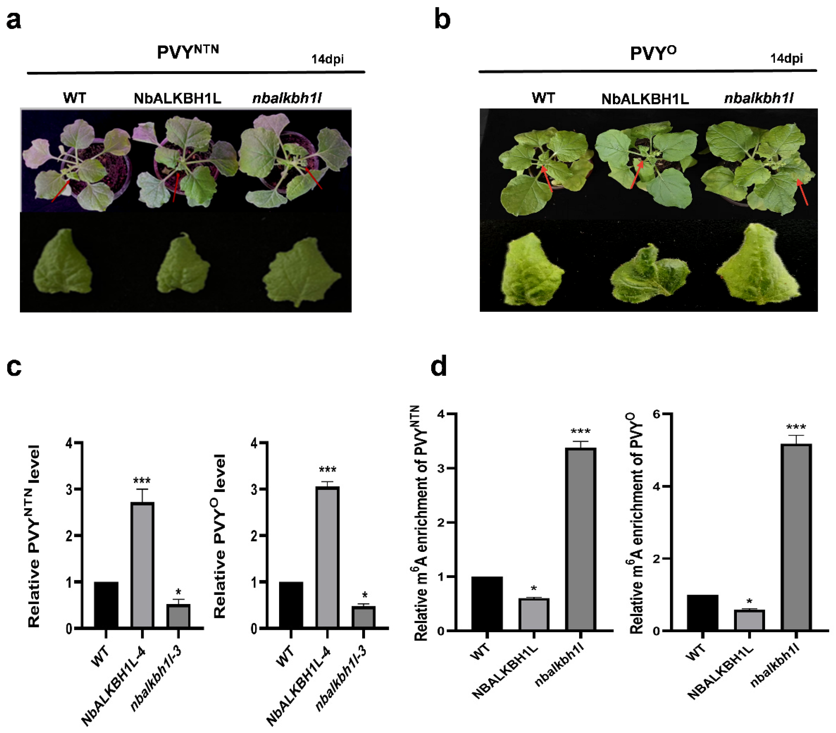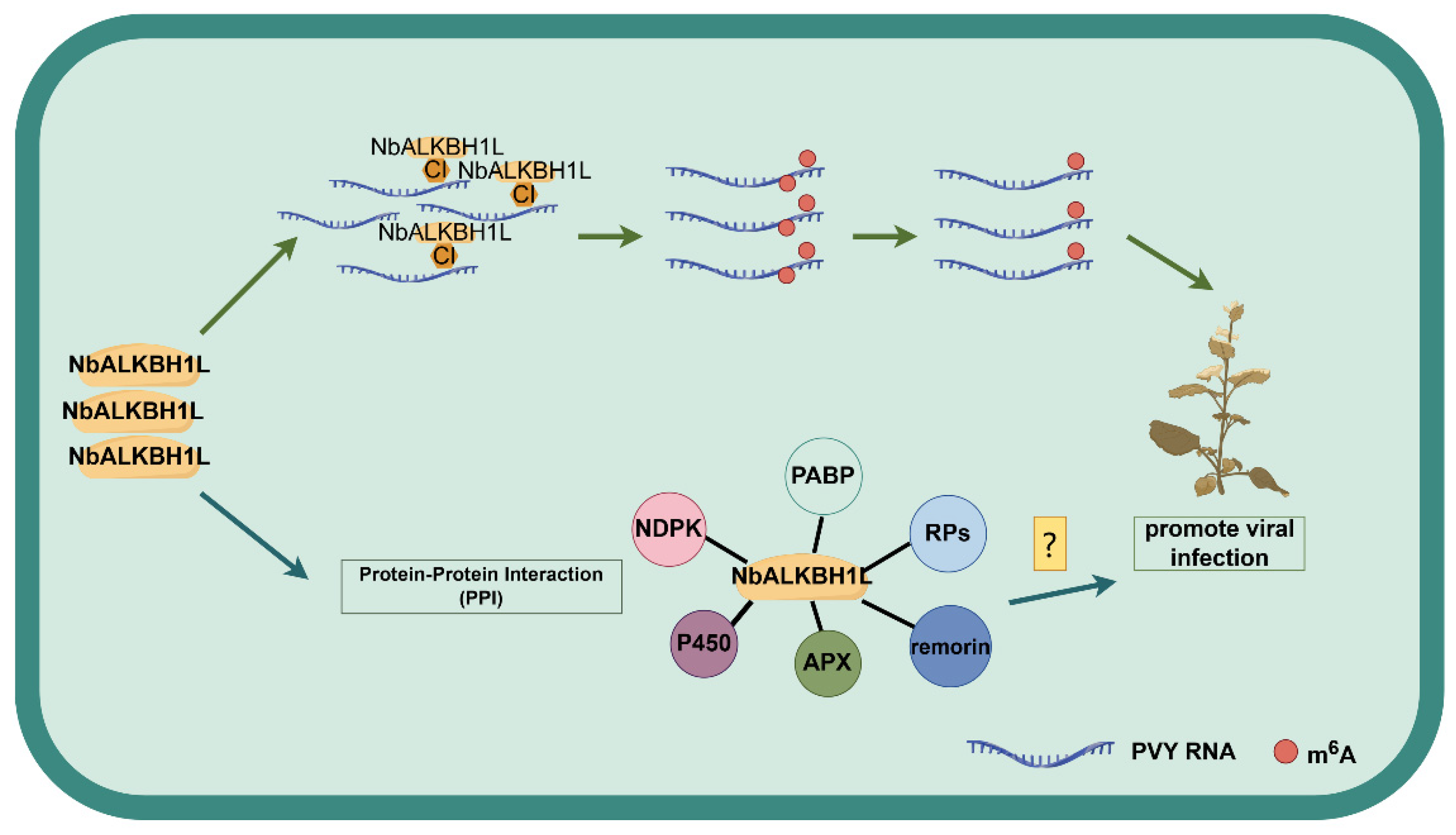 Zhou J, Sun S, Yuan J, Dong L, Wang X, Jing C, Nawaz MA, Tang R, Cao H, Nie B, et al. ALKBH1L Is an m6A Demethylase and Mediates PVY Infection in Nicotiana benthamiana Through m6A Modification. Plants. 2025; 14(24):3796. https://doi.org/10.3390/plants14243796
