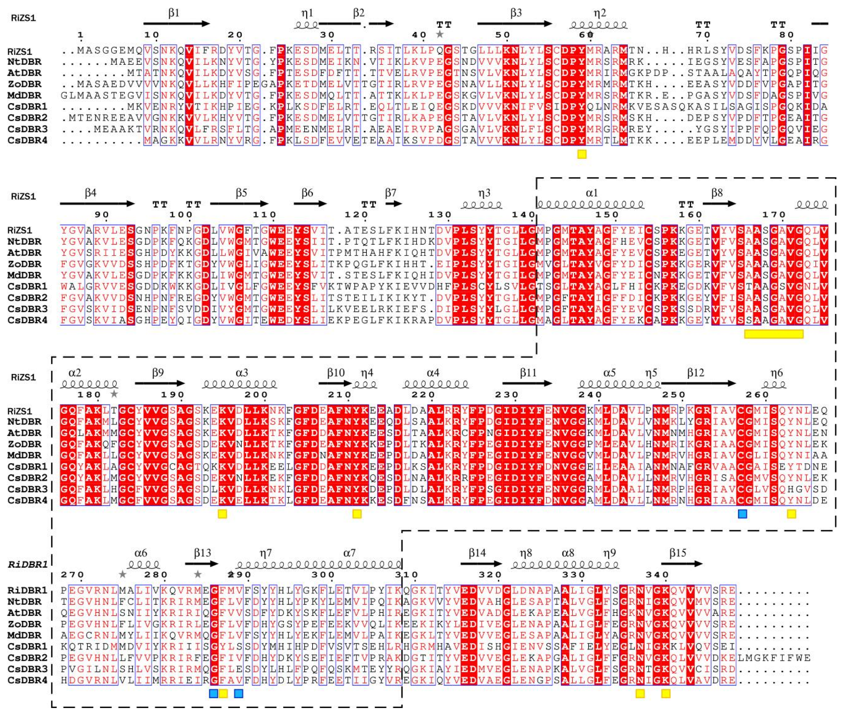 - Caliandro, R.; Polsinelli, I.; Demitri, N.; Musiani, F.; Martens, S.; Benini, S. The structural and functional characterization of Malus domestica double bond reductase MdDBR provides insights towards the identification of its substrates. Int. J. Biol. Macromol. 2021, 171, 89–99. [Google Scholar] [CrossRef]