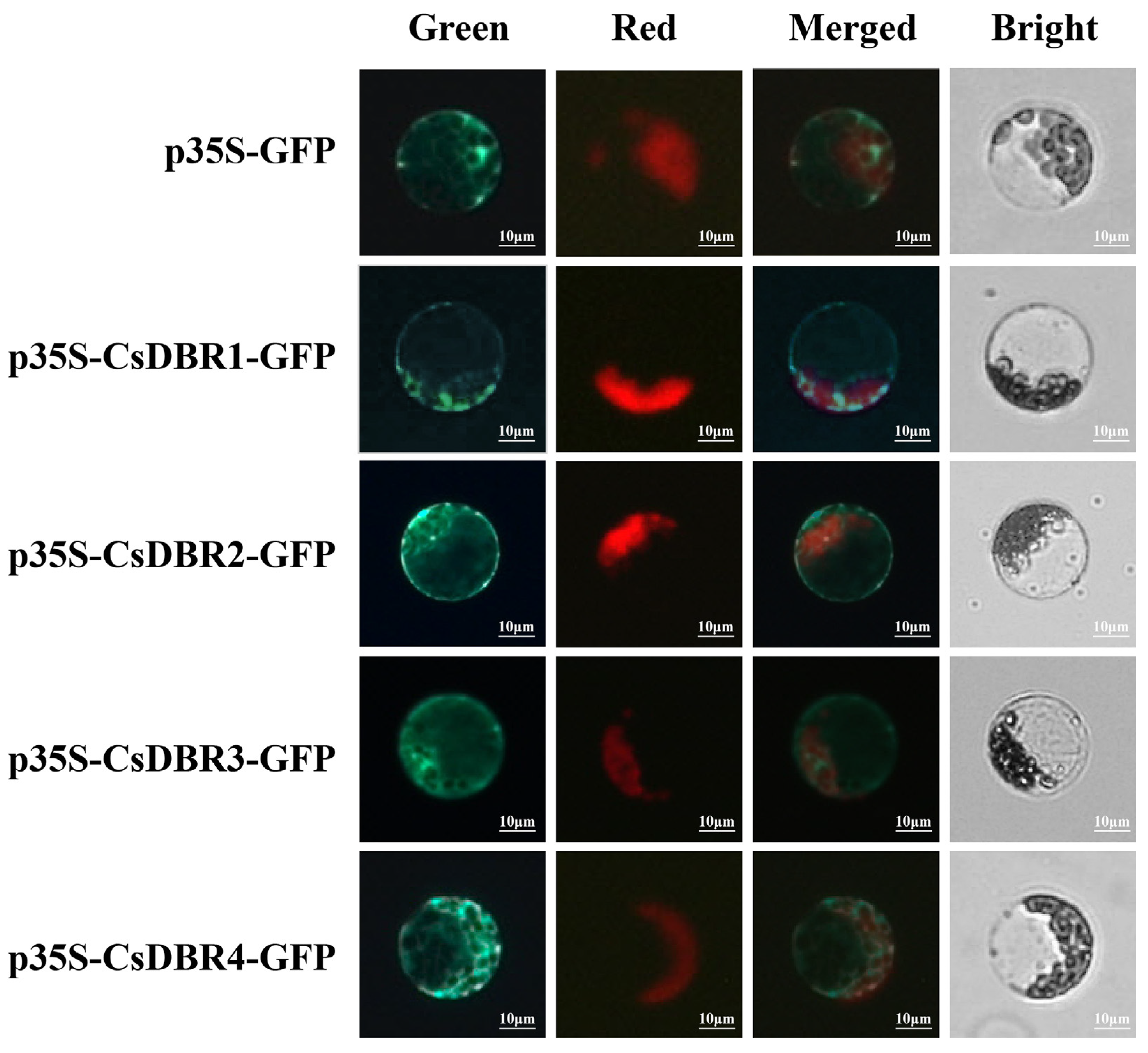 2.7. Cytoplasmic Localization of CsDBR Proteins
