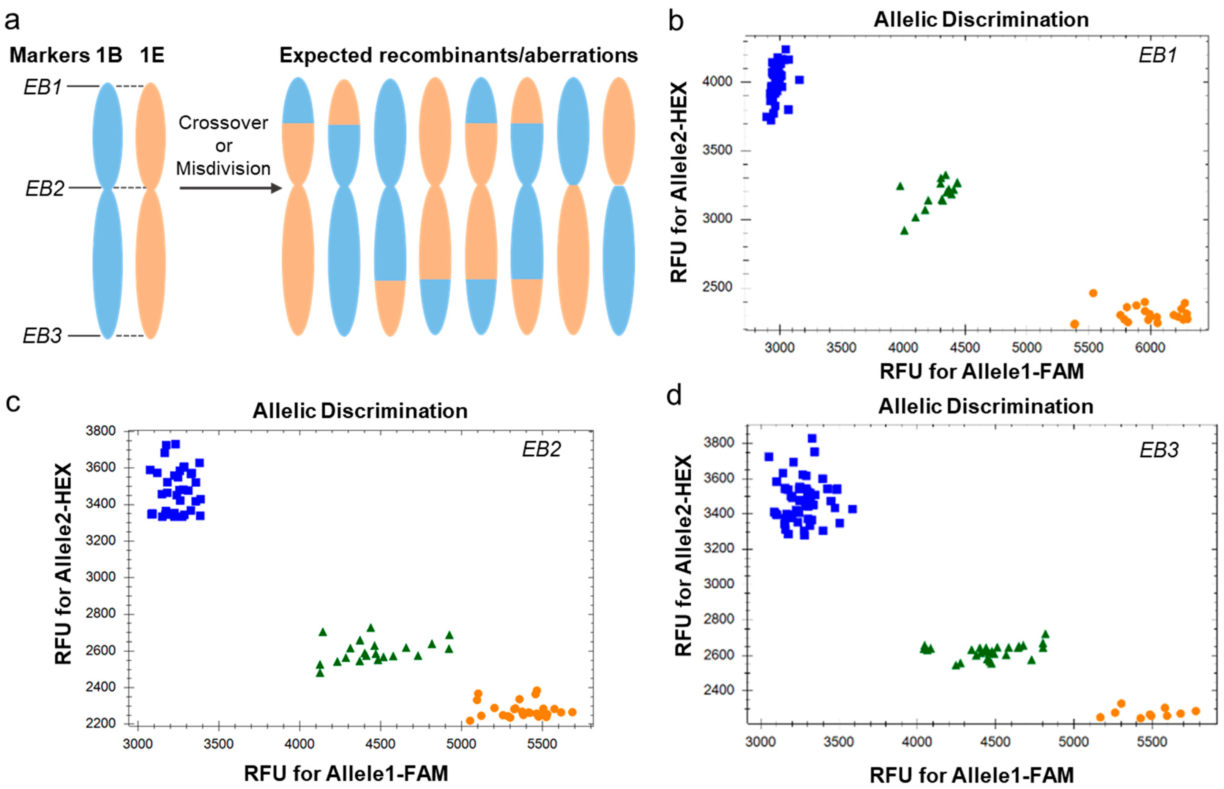 | EB3 | [A/T] | 1B | 697,751,963 | F1:[Tail1]-5′CACAAAGTAATCATCCAGTGT 3′ F2:[Tail2]-5′CAACACAAAGTAATCCAGTGA3′ R:5′AGCCAAGCTGTATGGCTACAG 3′ | 1B-1E |
