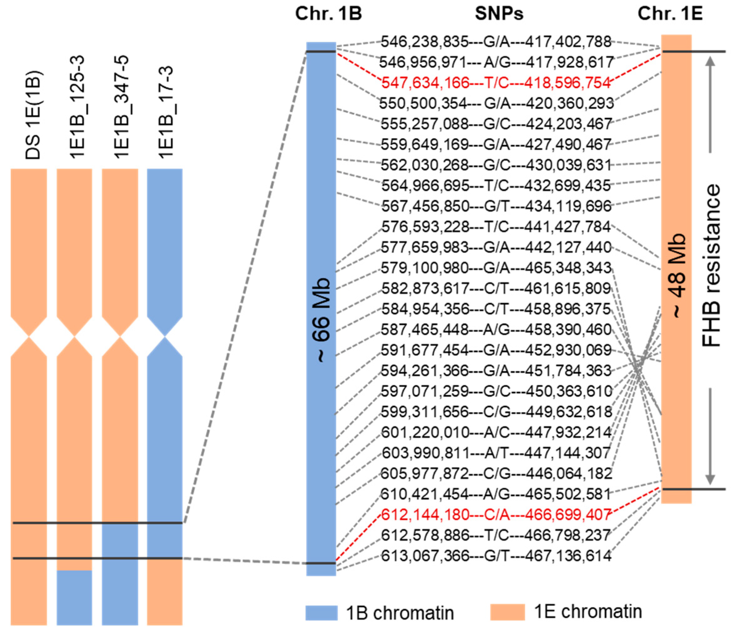 2.4. Evaluation of the Reaction of 1E-1B Recombinants to FHB