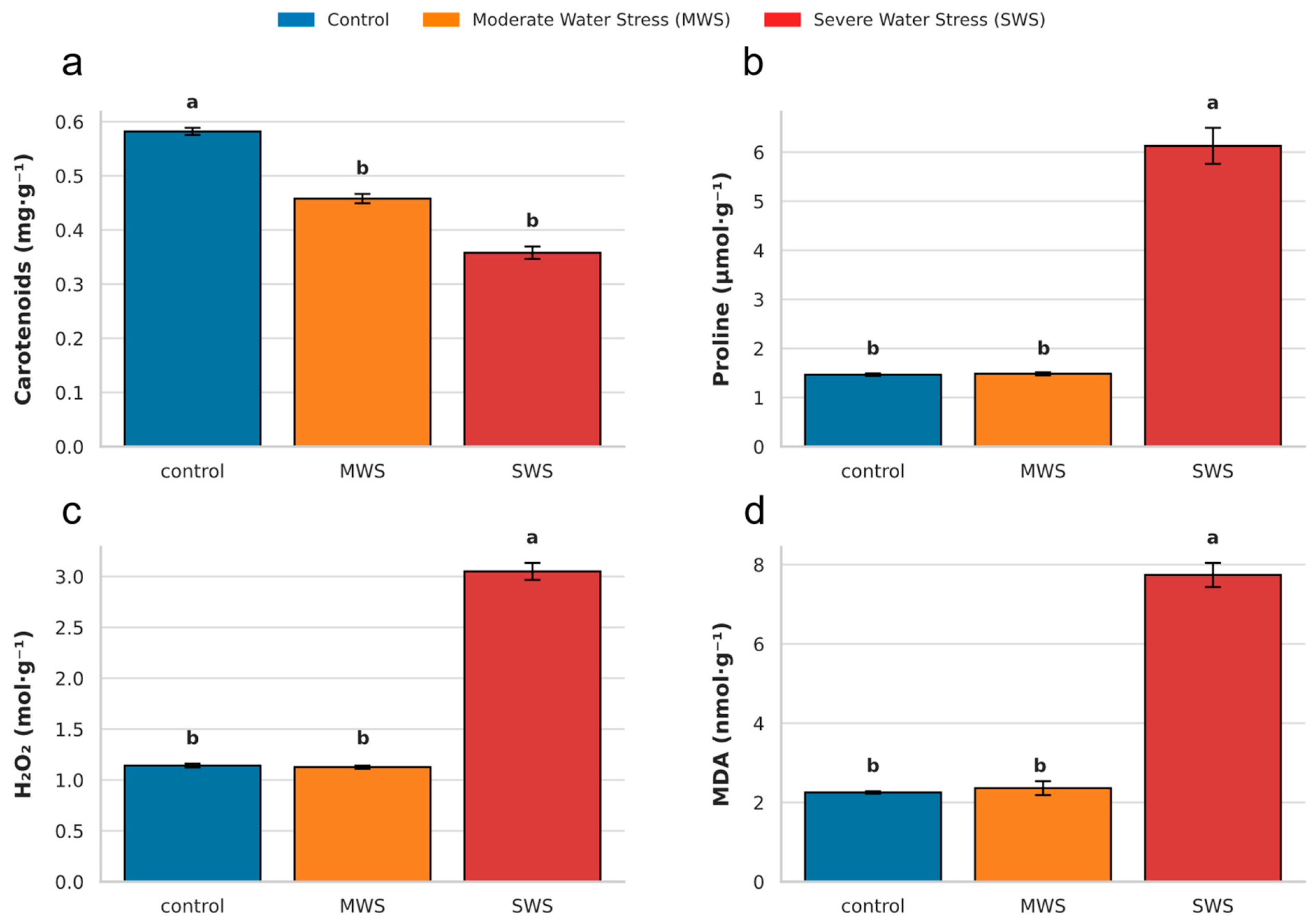 APA StyleRibeiro, D., Guzmán, M. R., Caperta, A. D., & Marques, I. (2025). Balancing Osmotic Protection and Oxidative Stress: Physiological and Biochemical Responses of Pot Marigold (Calendula officinalis L.) Plants to Water Stress. Plants, 14(24), 3809. https://doi.org/10.3390/plants14243809