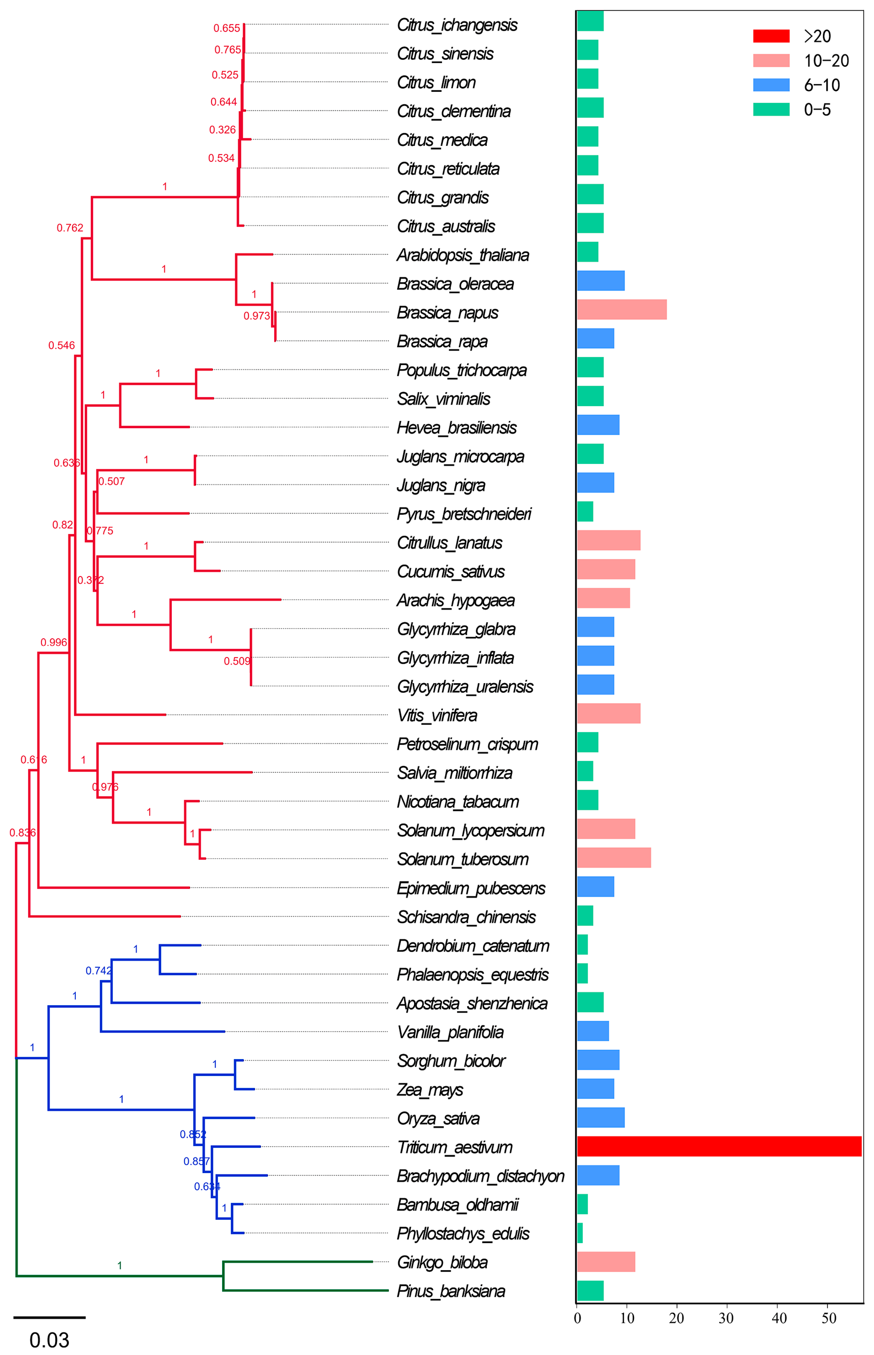 2.2. Evolutionary Expansion and Structural Diversification of the PAL Gene Family