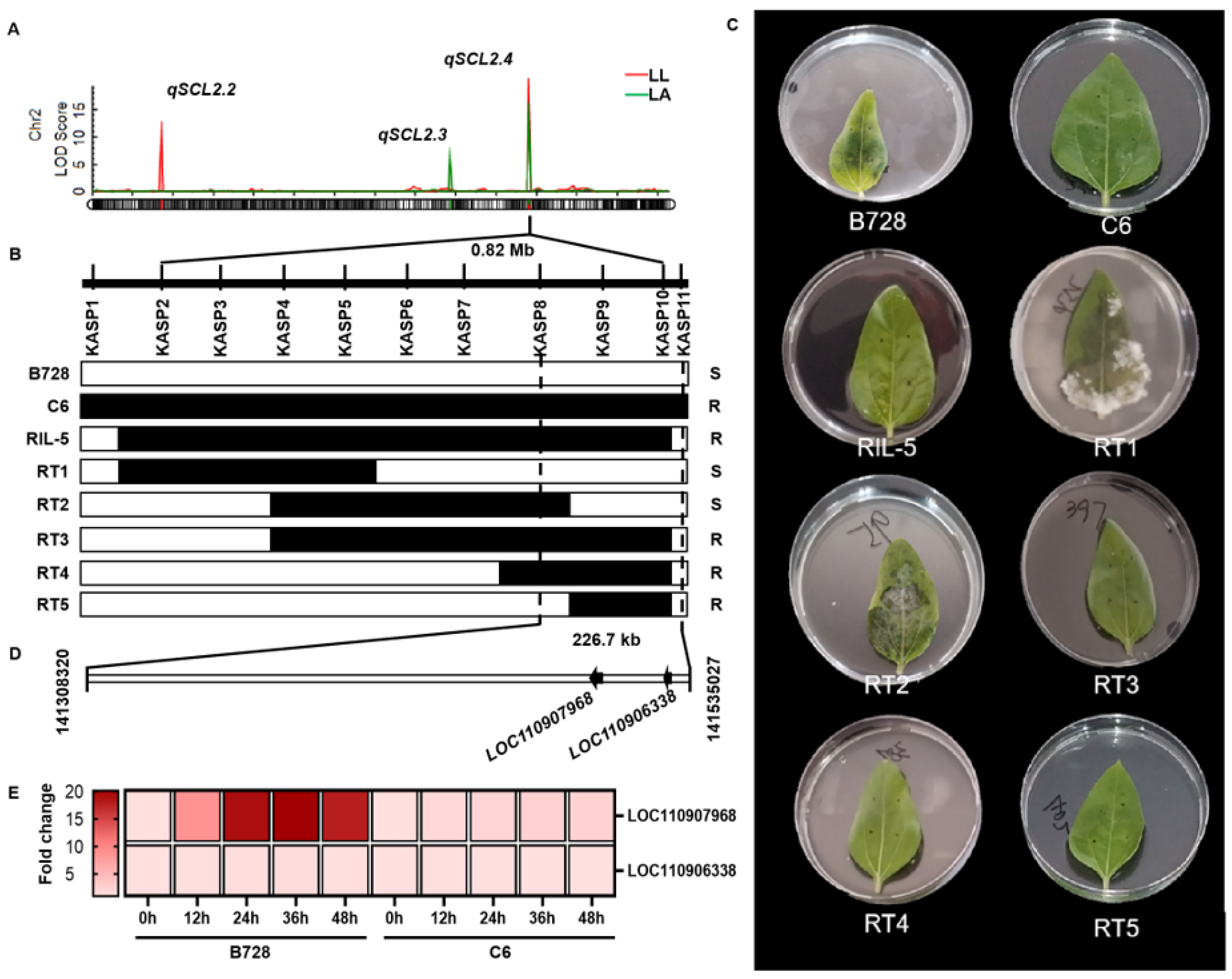 Zhao M, Wang D, Song D, Liu X, Yi B, Cao Y, Liu J, Feng L. Identification and Fine-Mapping of a Novel Locus qSCL2.4 for Resistance to Sclerotinia sclerotiorum in Sunflower (Helianthus annuus). Plants. 2025; 14(24):3826. https://doi.org/10.3390/plants14243826