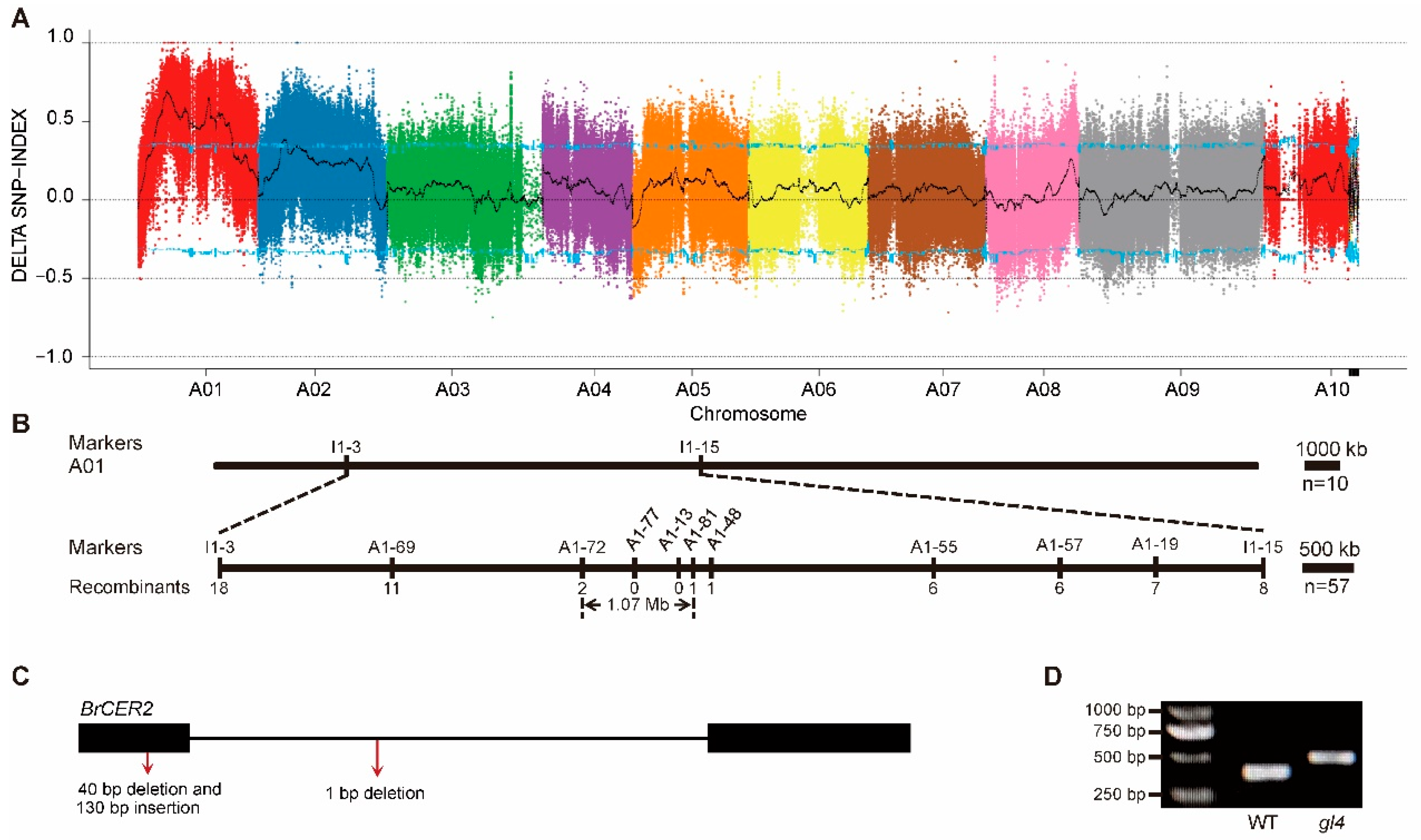 - Liu, Z.; Fang, Z.; Zhuang, M.; Zhang, Y.; Lv, H.; Liu, Y.; Li, Z.; Sun, P.; Tang, J.; Liu, D.; et al. Fine-mapping and analysis of Cgl1, a gene conferring glossy trait in cabbage (Brassica oleracea L. var. capitata). Front. Plant Sci. 2017, 8, 239. [Google Scholar] [CrossRef][Green Version]