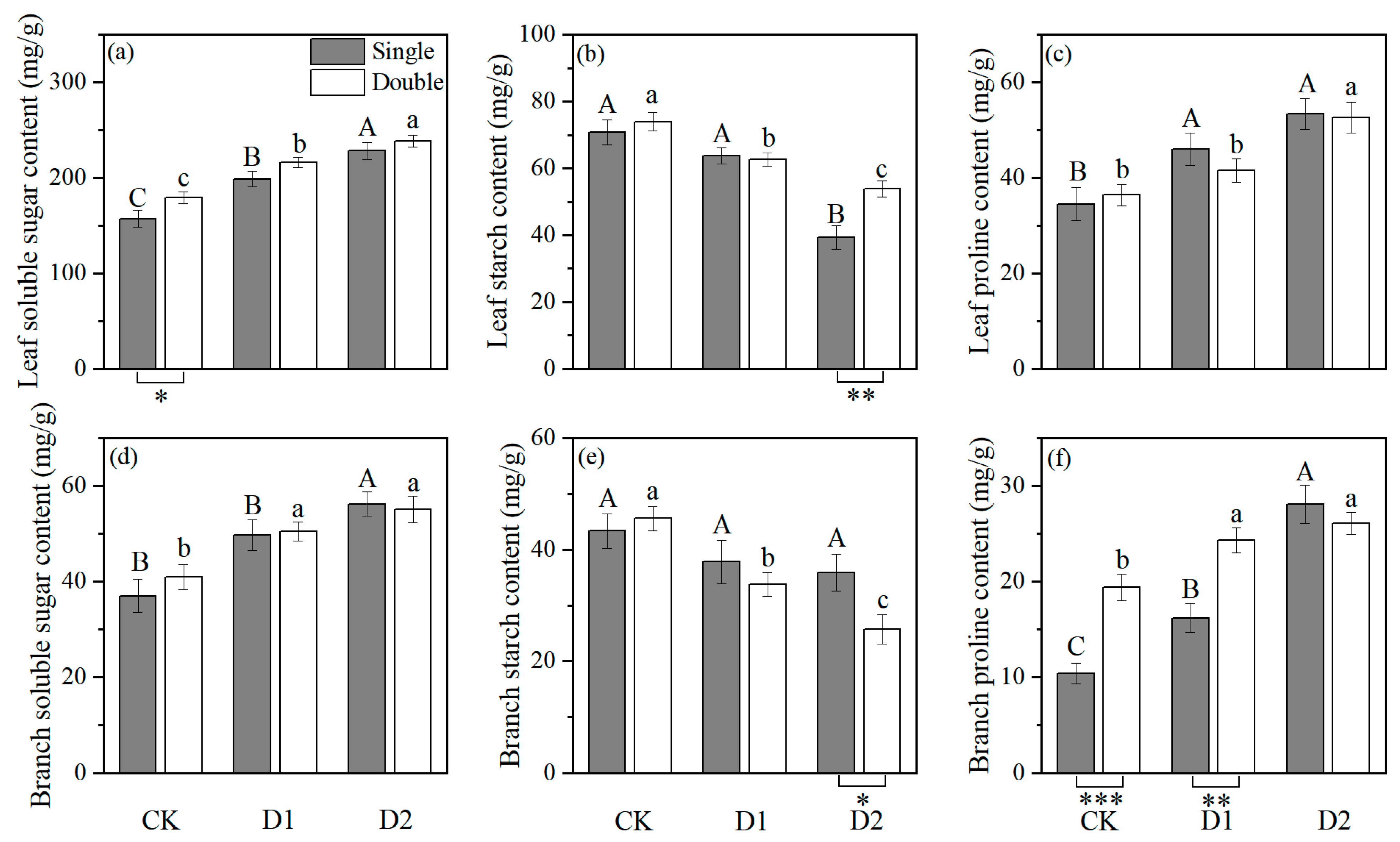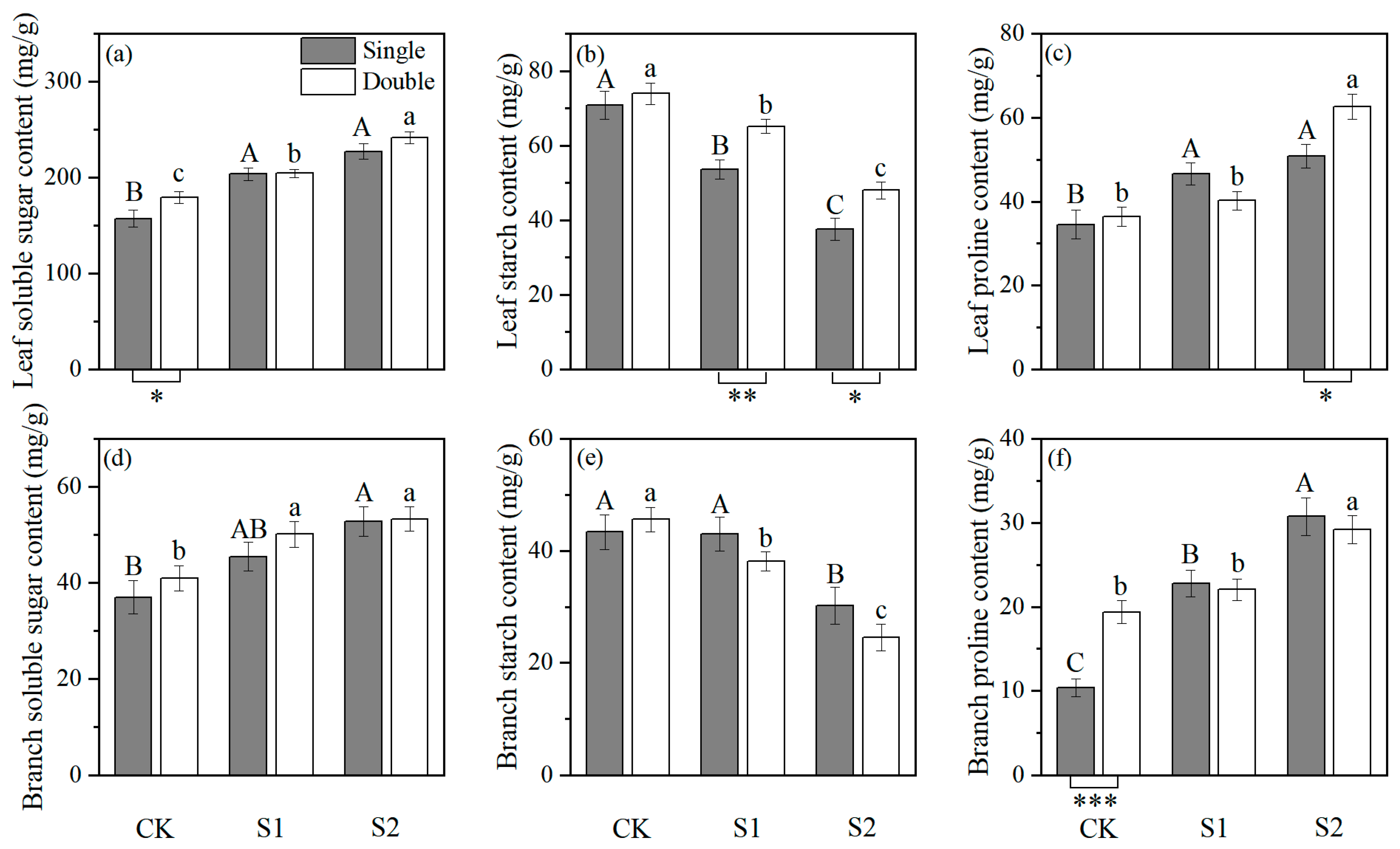 | Branch proline content | 0.524 | 0.000 | 0.000 | 0.002 | 0.815 |