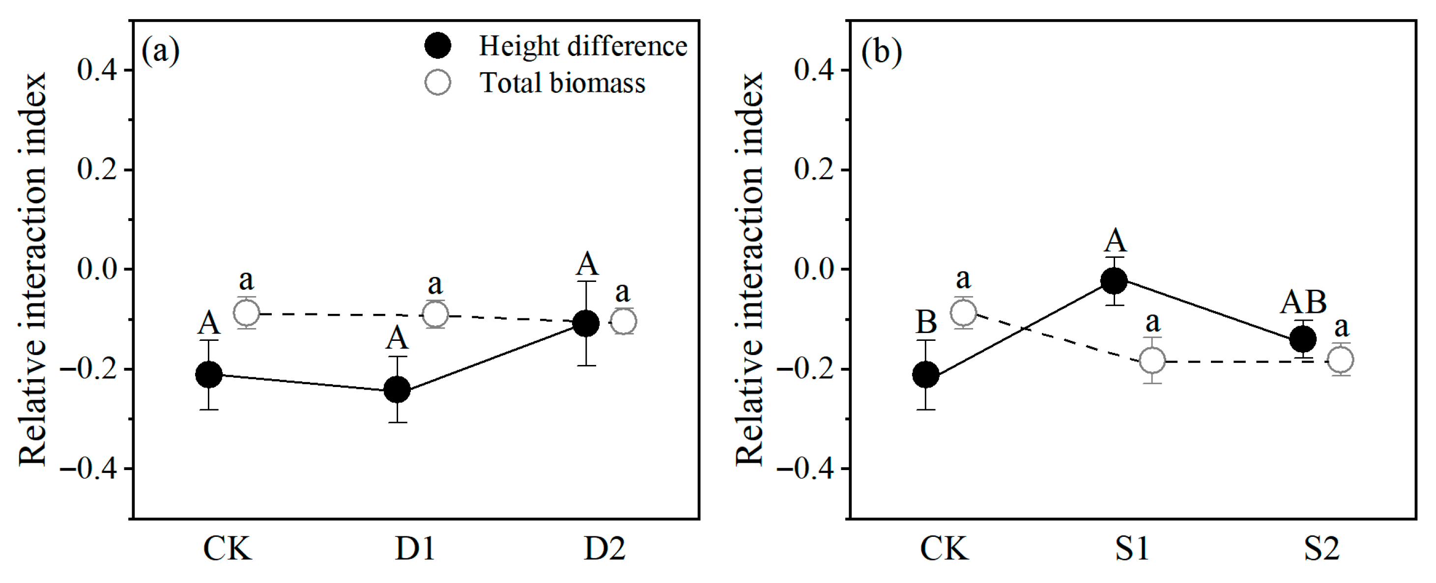- Wang, J.; Zhang, C.; Luo, P.; Yang, H.; Mou, C.; Mo, L. Does stress alleviation always intensify plant-plant competition? A case study from alpine meadows with simulation of both climate warming and nitrogen deposition. Ecol. Indic. 2022, 144, 109510. [Google Scholar] [CrossRef]