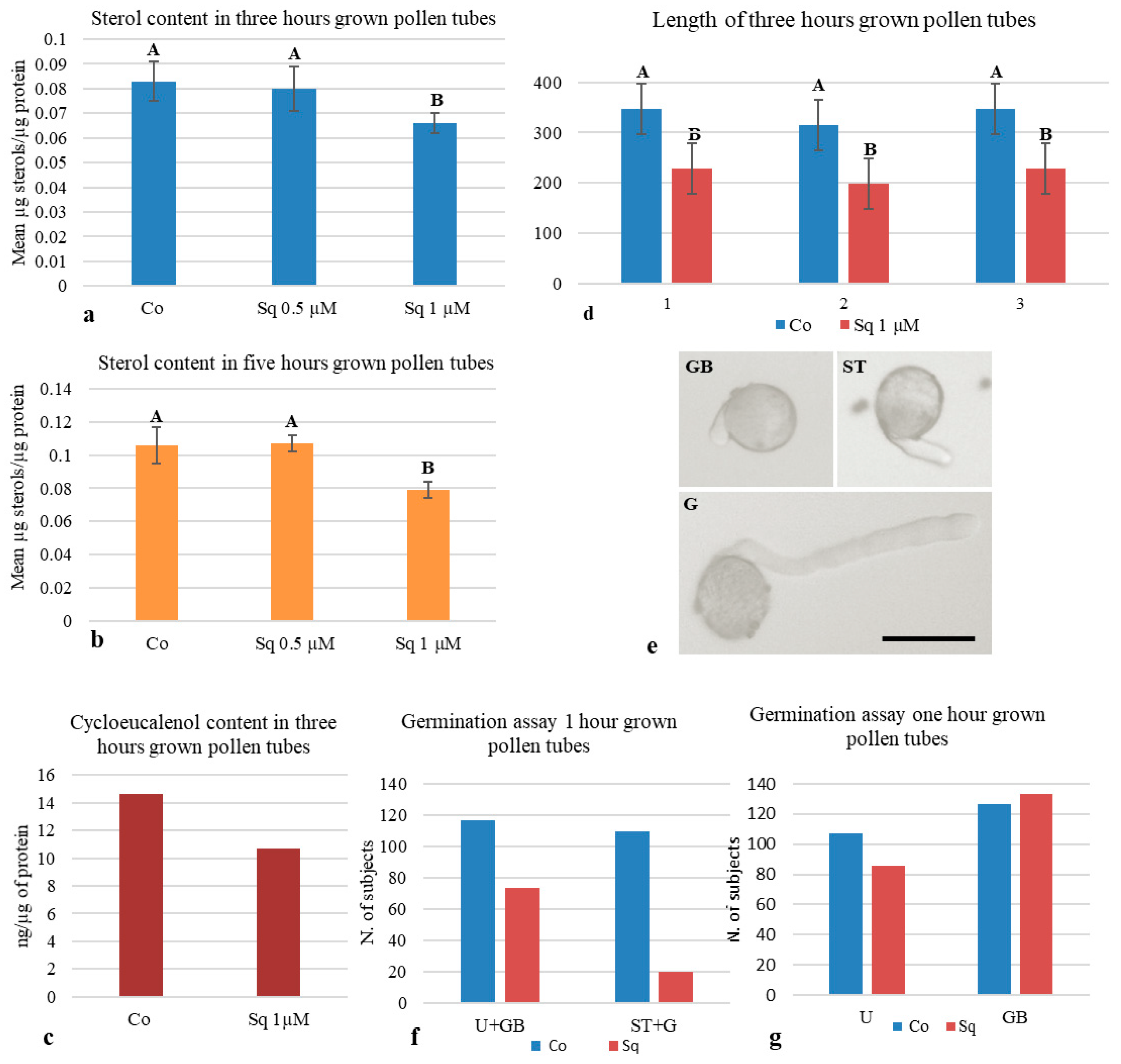 2.1. Squalestatin Affects Sterol Biosynthesis and Delays Pollen Tube Emission
