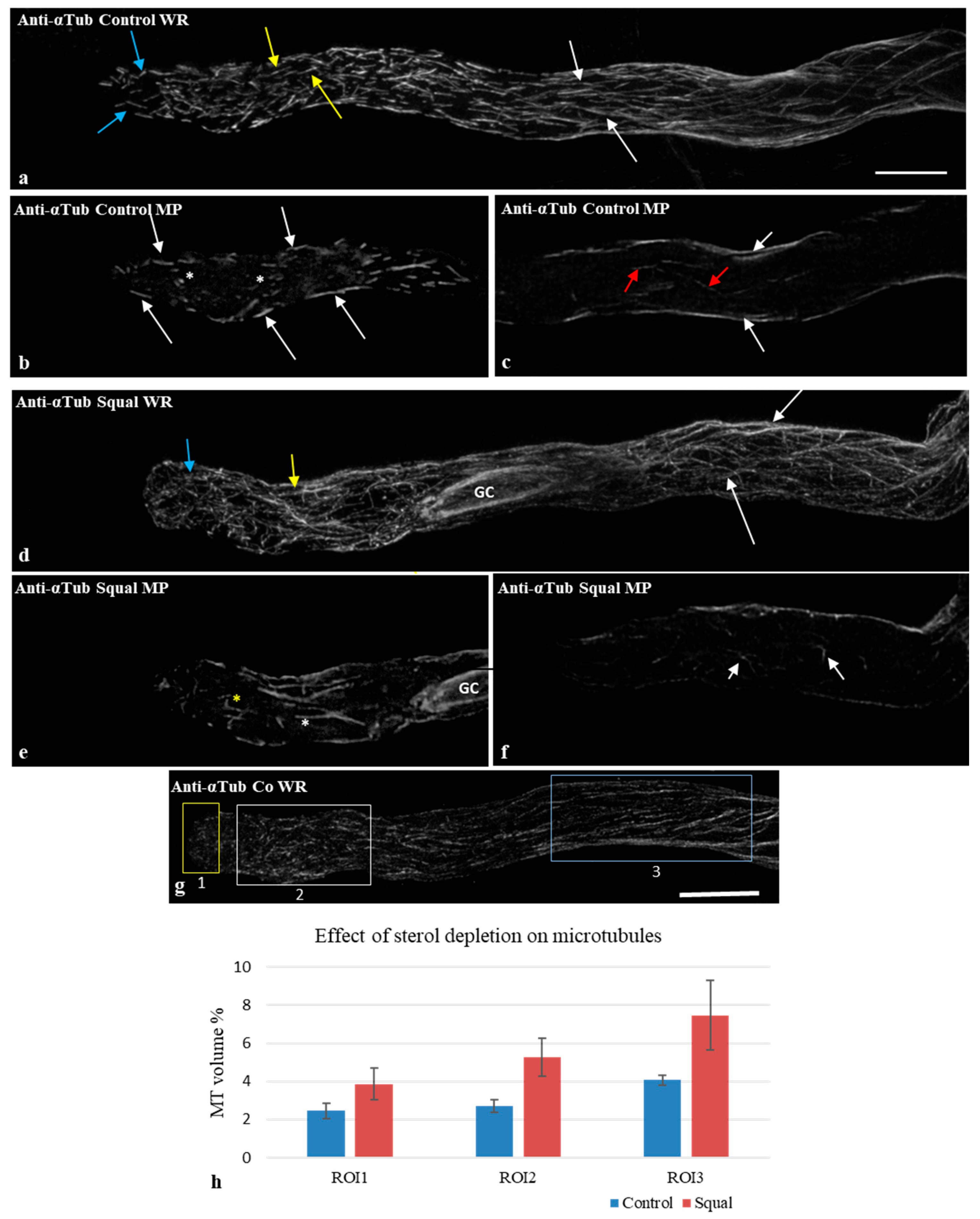 3.4. Sterol Depletion Affected the Bundling Capacity of Cortical MTs