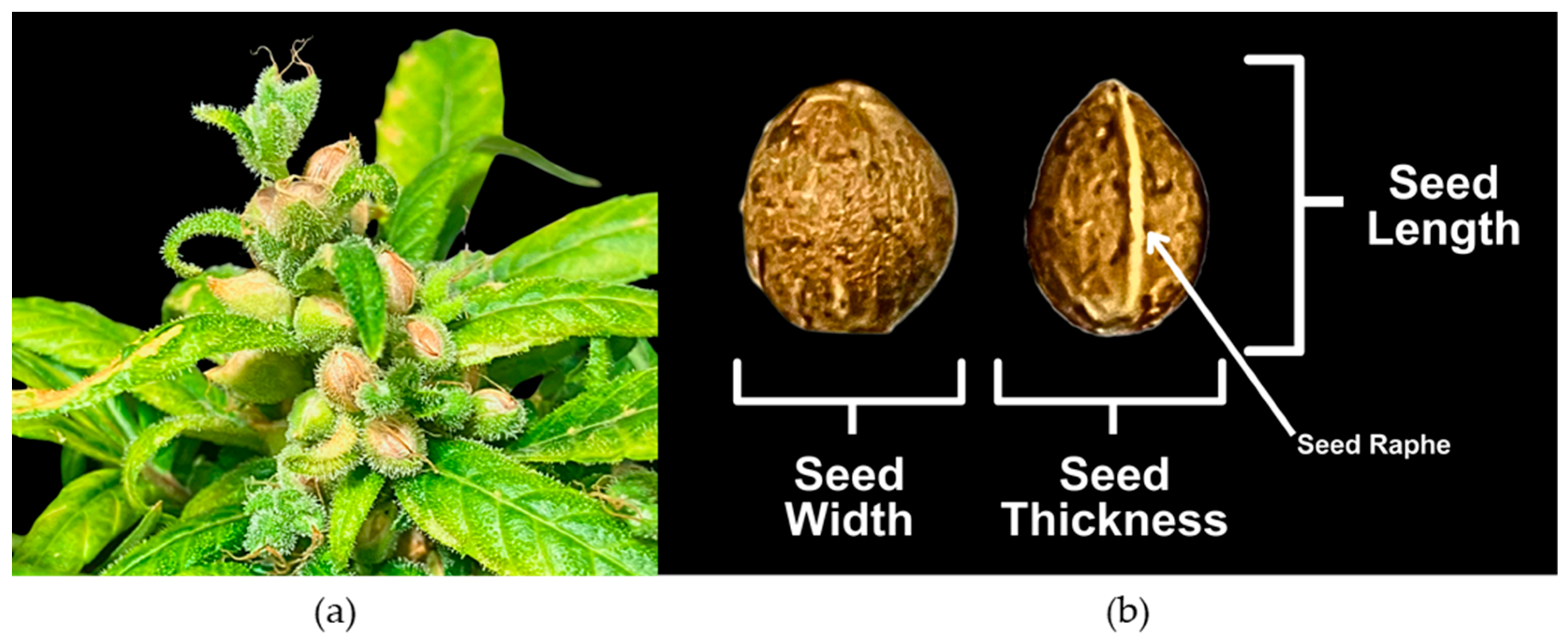 Manansala-Siazon, S.E.; Siazon, P.M.; Tandayu, E.; Garcia-de Heer, L.; Burn, A.; Guo, Q.; Mieog, J.C.; Kretzschmar, T. Seed the Difference: QTL Mapping Reveals Several Major Loci for Seed Size in Cannabis sativa L. Plants 2025, 14, 3853. https://doi.org/10.3390/plants14243853