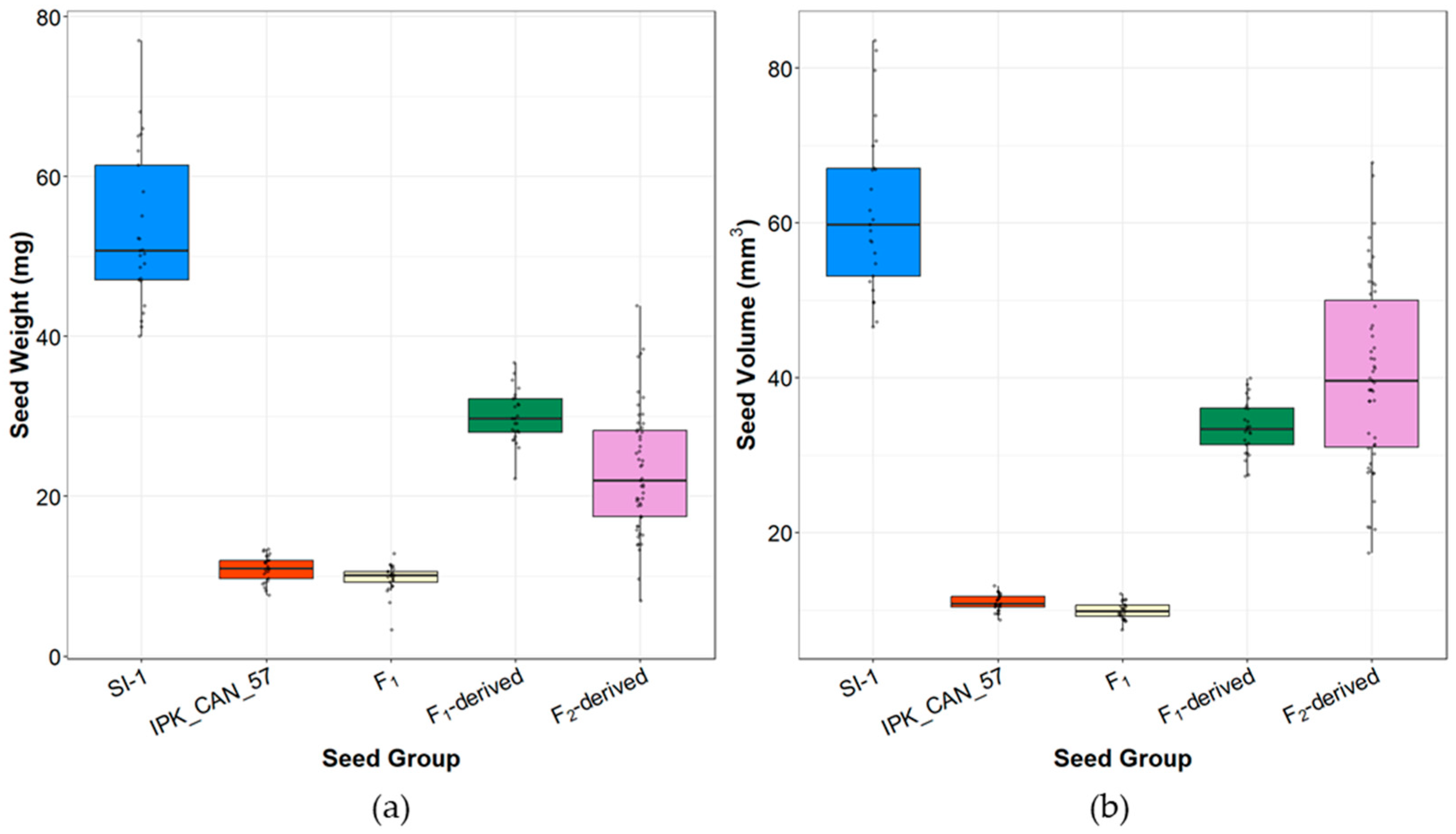 2.3. Seed Phenotypes Across Generations