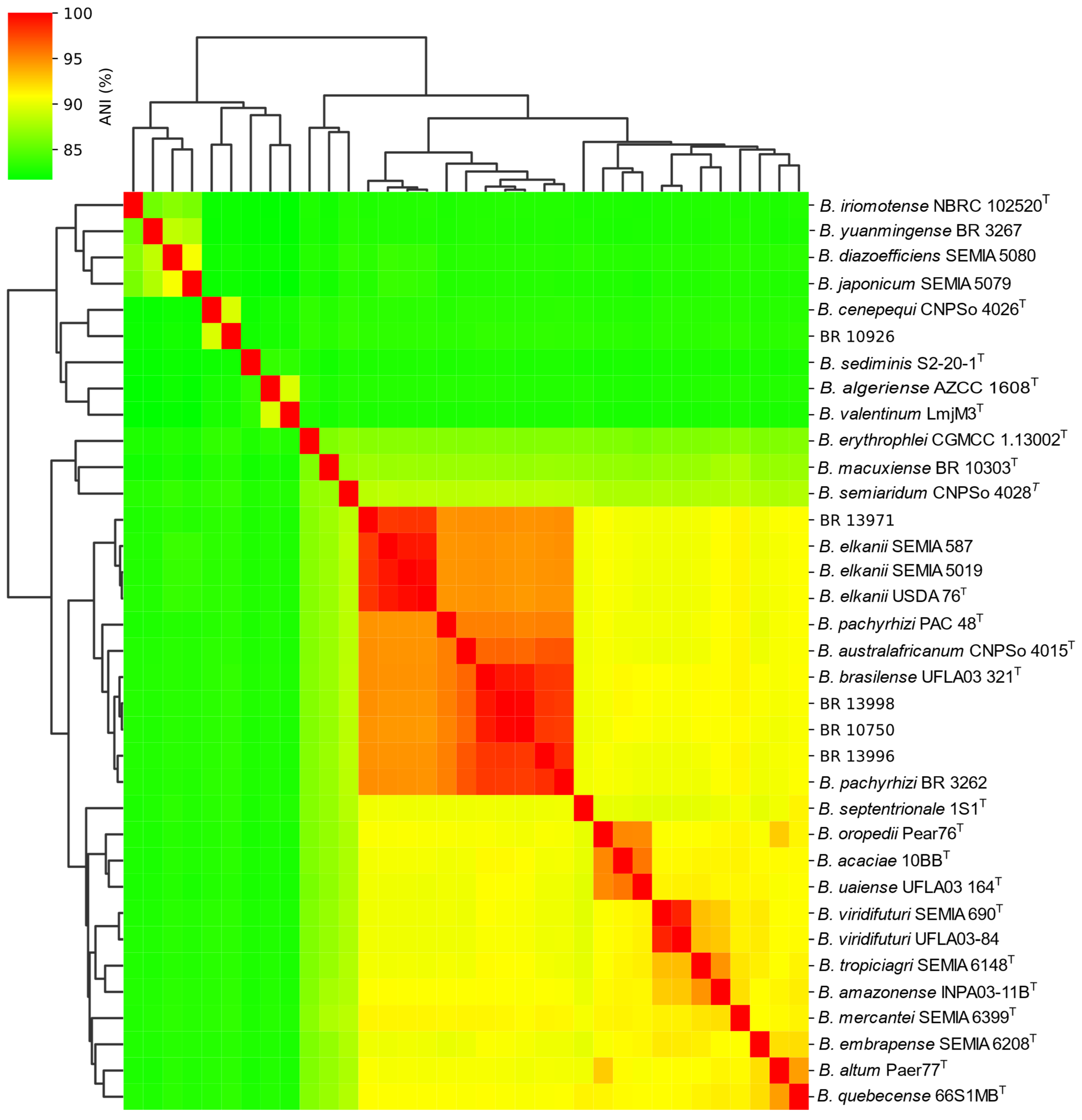 | B. elkanii USDA 76T | 98.1 | - | 94.4 | 94.6 | 94.6 | 94.7 | 94.7 | 94.6 | 83.3 | 83.2 |