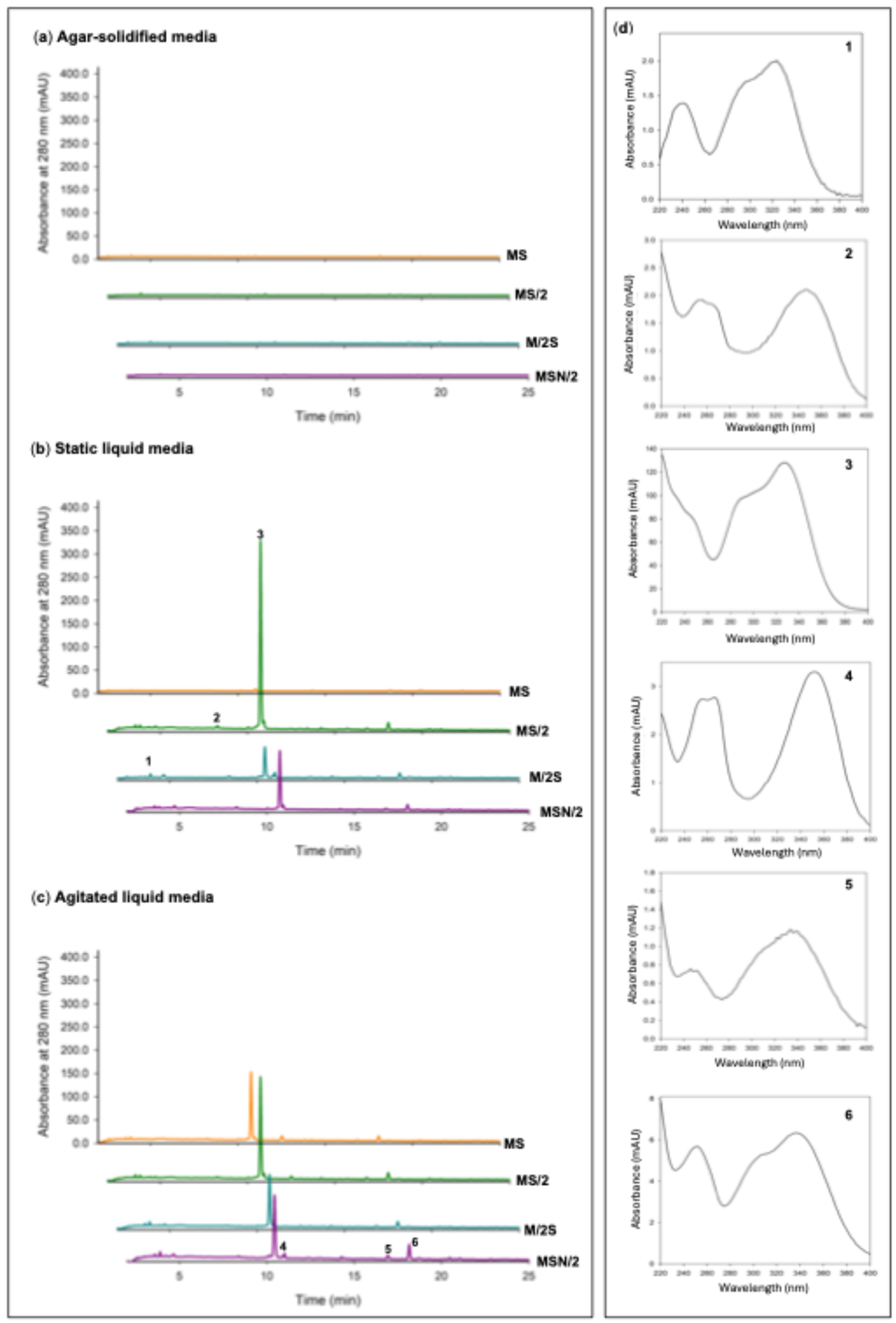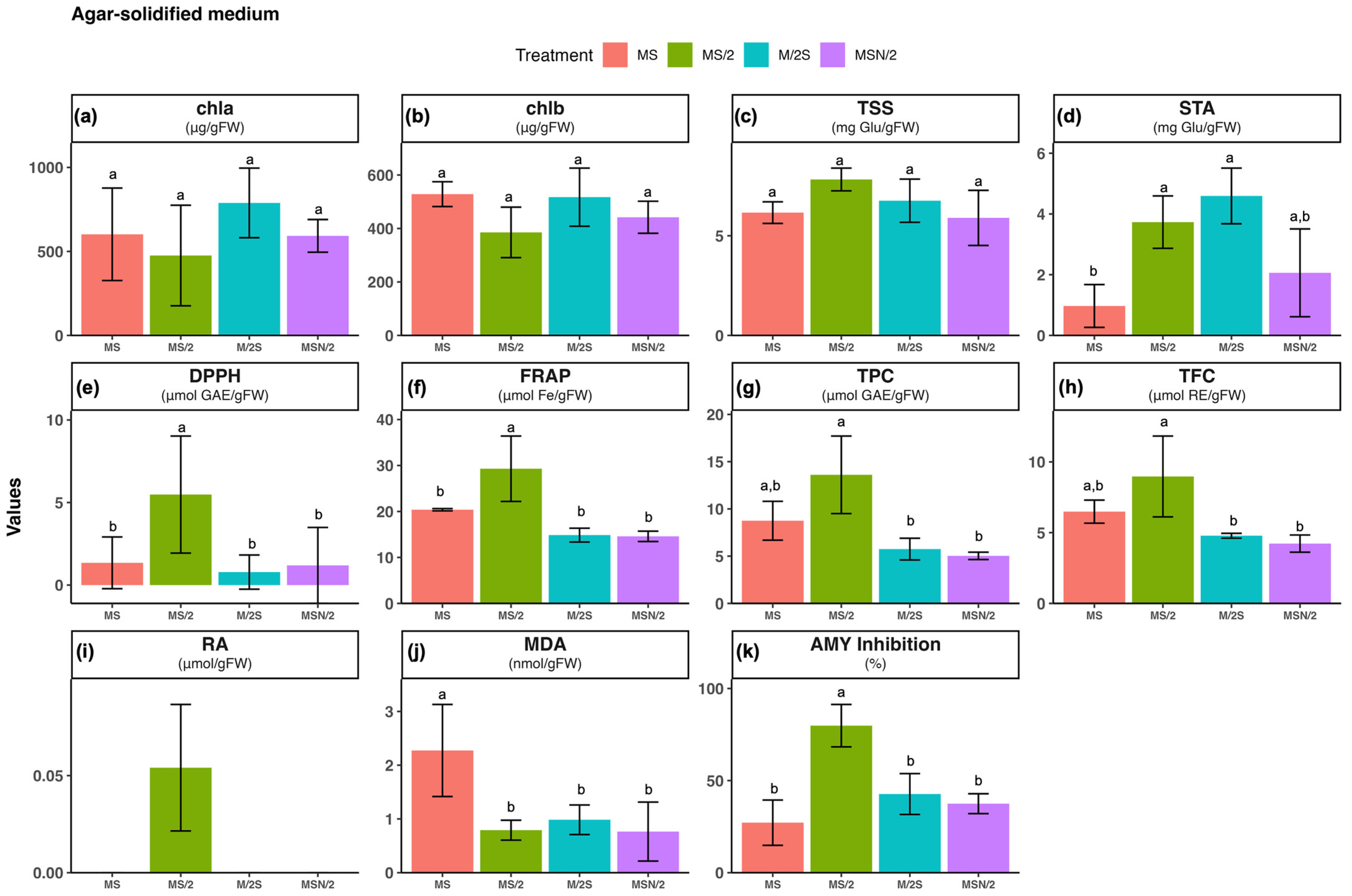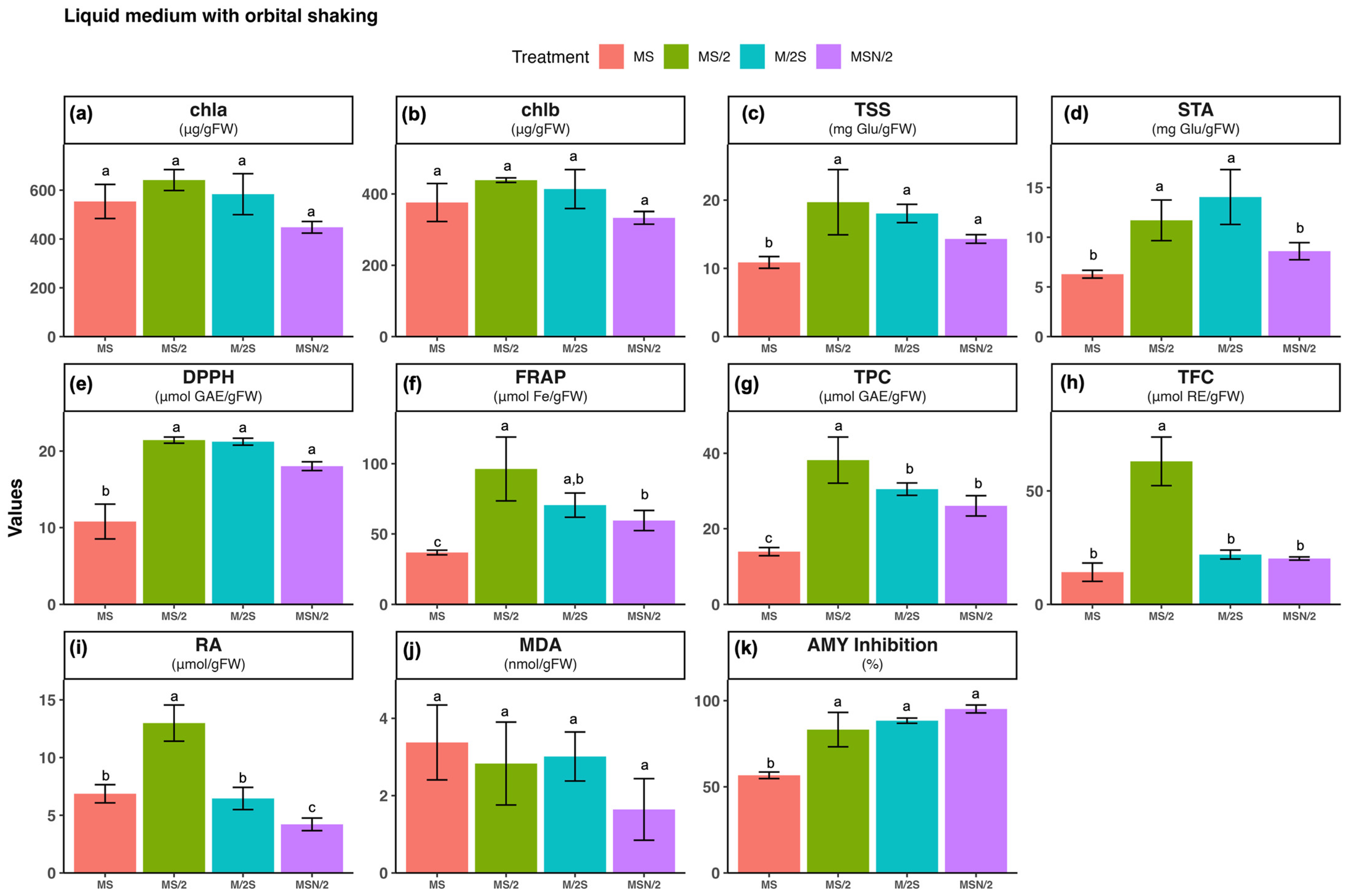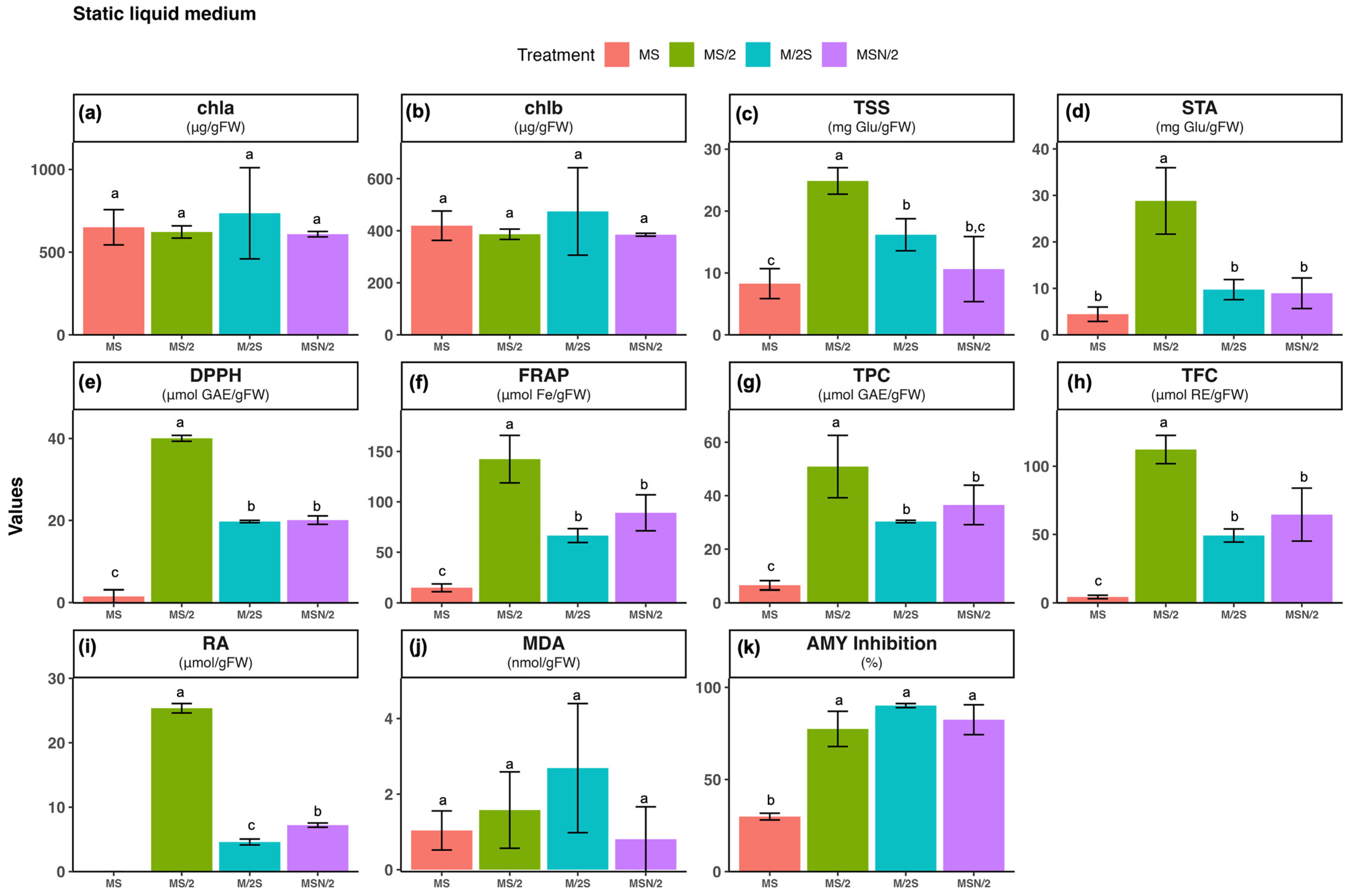 2.5. Effect of Basal Media Composition and Culture System on the α-Amylase Inhibitory Activity