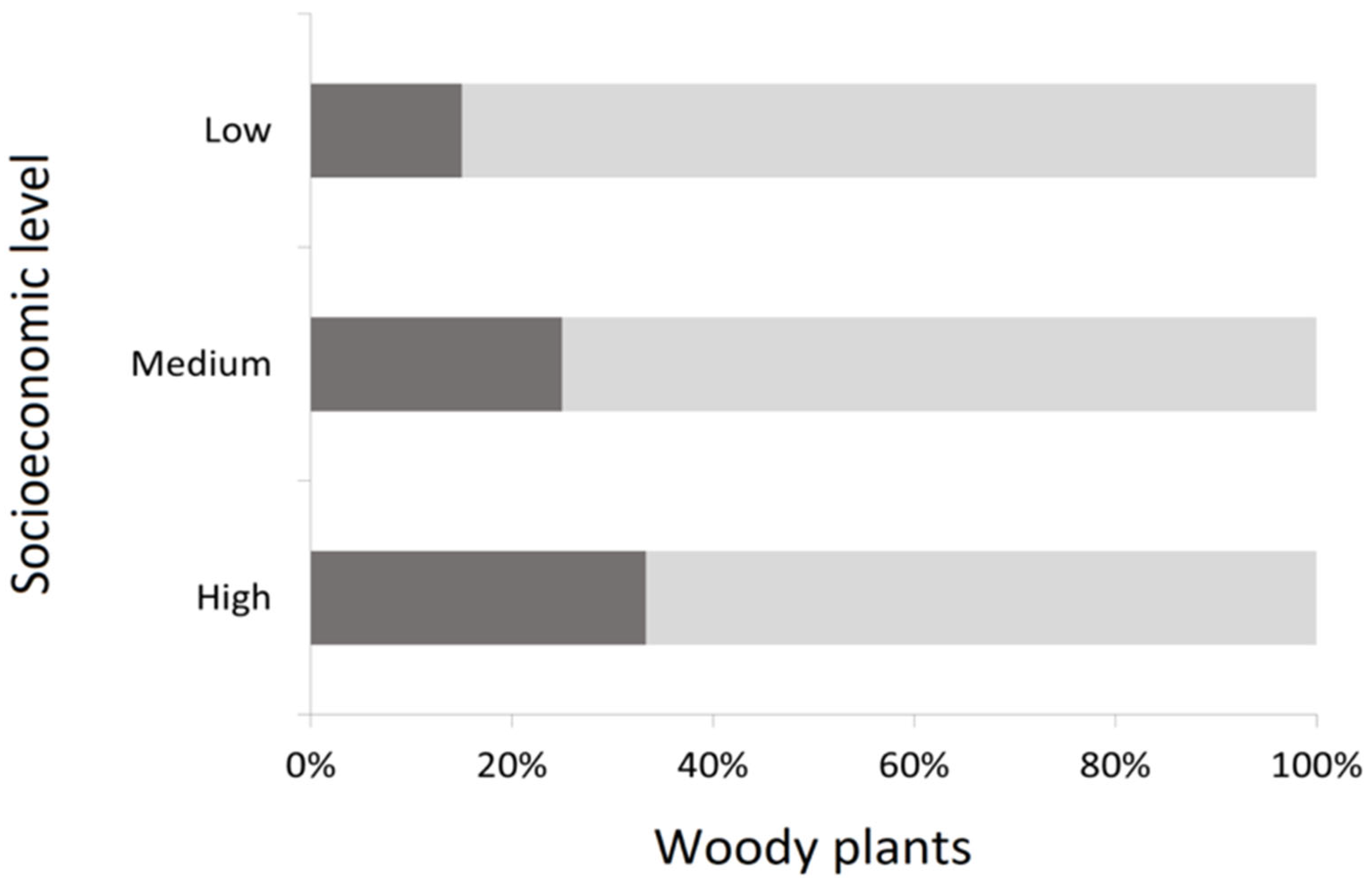 Uribe, S.V.; Valladares-Moreno, Á.; Escobar, M.A.H.; Villaseñor, N.R. Socioeconomic Disparities in the Diversity, Abundance, Structure and Composition of Woody Plants in Residential Streetscapes: Insights for Transitioning to a More Environmentally Just City. Plants 2025, 14, 3865. https://doi.org/10.3390/plants14243865