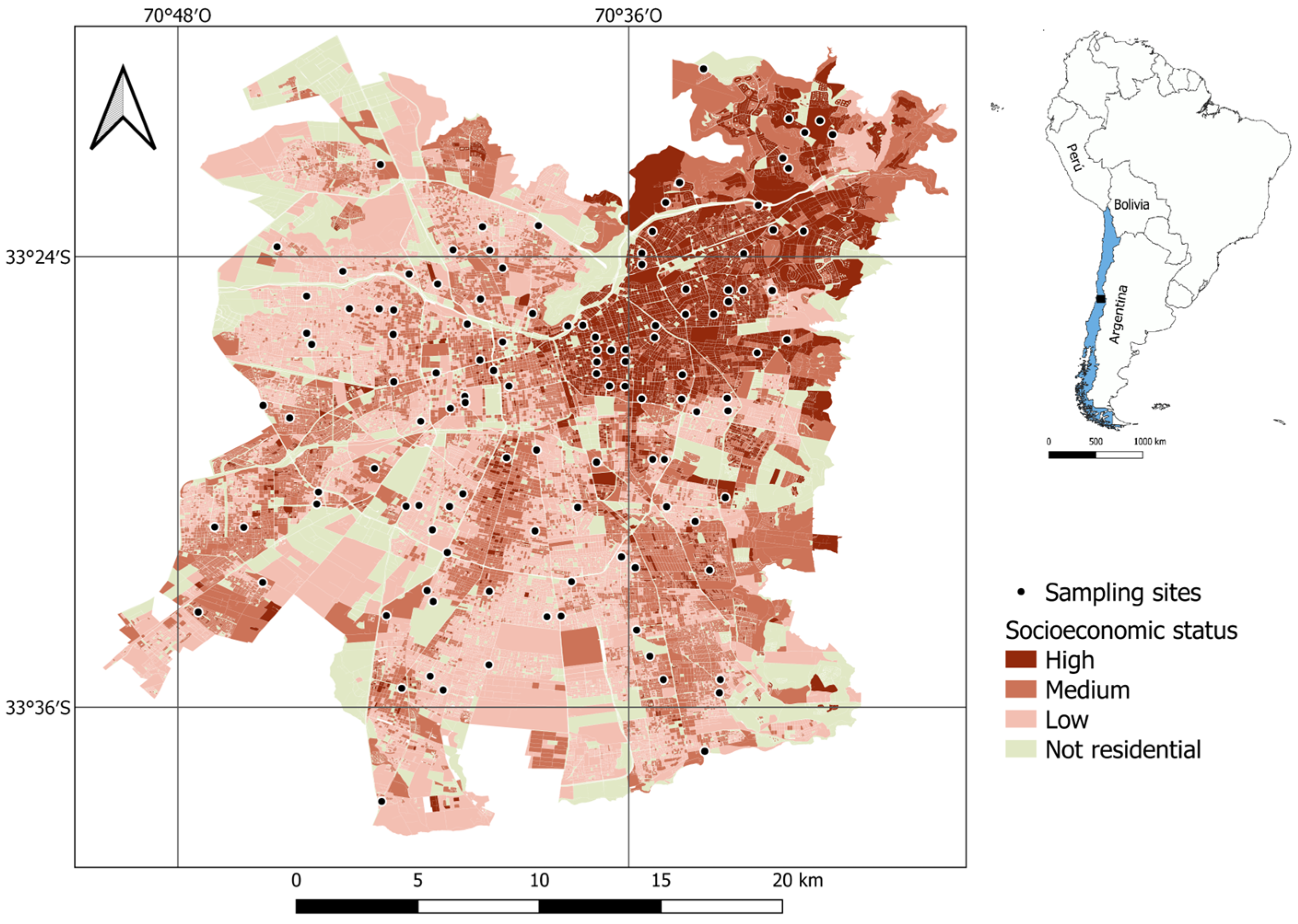 - Link, F.; Valenzuela, F. La Estructura de la Densidad Socio–Residencial en el Área Metropolitana de Santiago; Documentos de Trabajo del IEUT; Instituto de Estudios Urbanos y Territoriales UC: Santiago, Chile, 2018; N°3. [Google Scholar] [CrossRef]