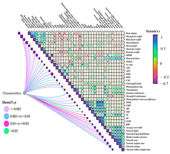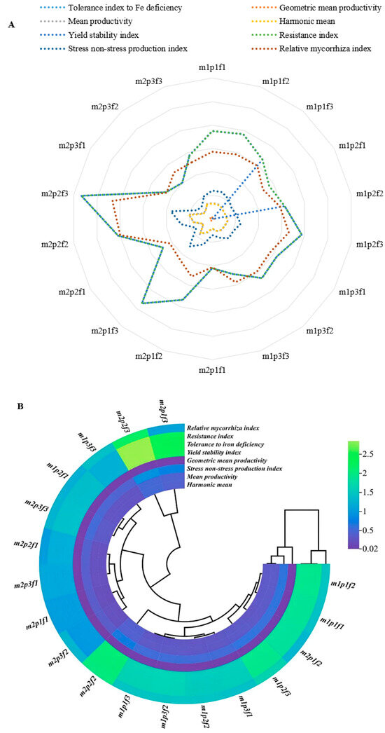 Data were analyzed using Statistix 8 (Tallahassee, FL, USA). All data were subjected to a two-way analysis of variance, and the means were compared for significance using the least significant difference (LSD) test at p < 0.05. Spider graphs were created using Excel 2013. PCA was performed using Statgraphics Centurion Version XVI. Circular diagrams and correlations between traits were created using the website https://www.chiplot.online/.