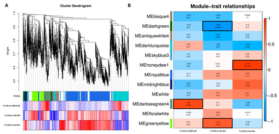 - Langfelder, P.; Horvath, S. WGCNA: An R package for weighted correlation network analysis. BMC Bioinform. 2008, 9, 559. [Google Scholar] [CrossRef]