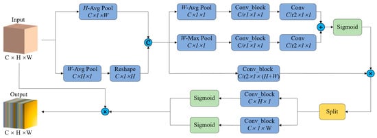 where and denote the attentional weights along the horizontal and vertical directions, respectively. Finally, the feature maps from the self-calibrated attention module are obtained, calculated as: