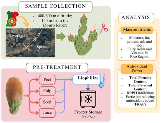 Workflow for cactus fruit (Opuntia spp.) collection, pre-treatment, and nutritional analysis.