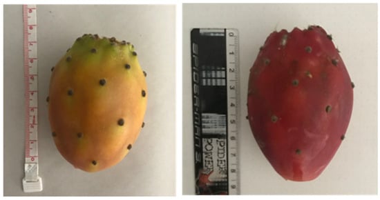 All fruit samples (summer and winter) were collected on the same plant located on the arid slopes near the Saucelle Dam in the municipality of Freixo de Espada à Cinta, Bragança, Portugal, and by the same time of day (late morning) (Coordinates: 40.9956349, −6.8074360). The summer samples were collected in early September 2019, while the winter samples were collected in late December 2019. Samples were transported to the laboratory within less than 24 h and kept in a refrigerated unit. All samples were collected from a single mature Opuntia ficus-indica plant, of the orange variety, that did not show any signs of disease or was occulted by other vegetation, with direct sunlight exposure. The samples showed distinct colors but similar sizes (Figure 2).