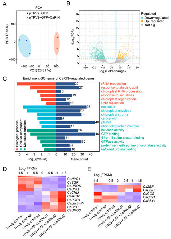2.1. Silencing of CaRIN Inhibits Chlorophyll Degradation and Carotenoid Accumulation During Pepper Fruit Ripening