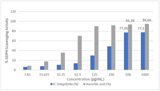 DPPH radical scavenging activity results for Knautia integrifolia and ascorbic acid (%).