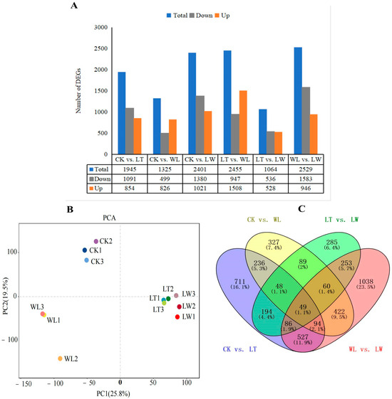 2.2. Analysis of Transcriptome in Eggplant Pericarp Under Low-Temperature and Weak-Light Stress