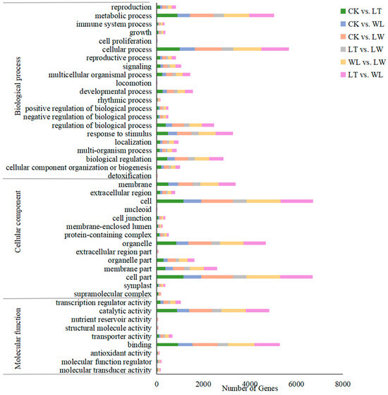 2.3. Analysis of Differentially Expressed Genes in Eggplant Pericarp Under Low-Temperature and Weak-Light Stress