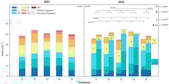 | 2022 | Farmer | Yes | T1 | 18.76 | b | 5.27 | a | 61.29 | b |