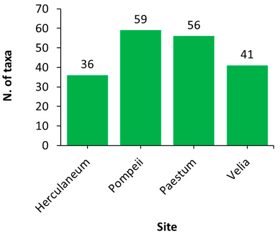 - Zangari, G.; Bartoli, F.; Lucchese, F.; Caneva, G. Plant Diversity in Archaeological Sites and Its Bioindication Values for Nature Conservation: Assessments in the UNESCO Site Etruscan Necropolis of Tarquinia (Italy). Sustainability 2023, 15, 16469. [Google Scholar] [CrossRef]